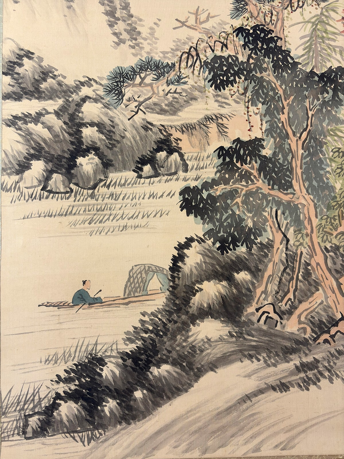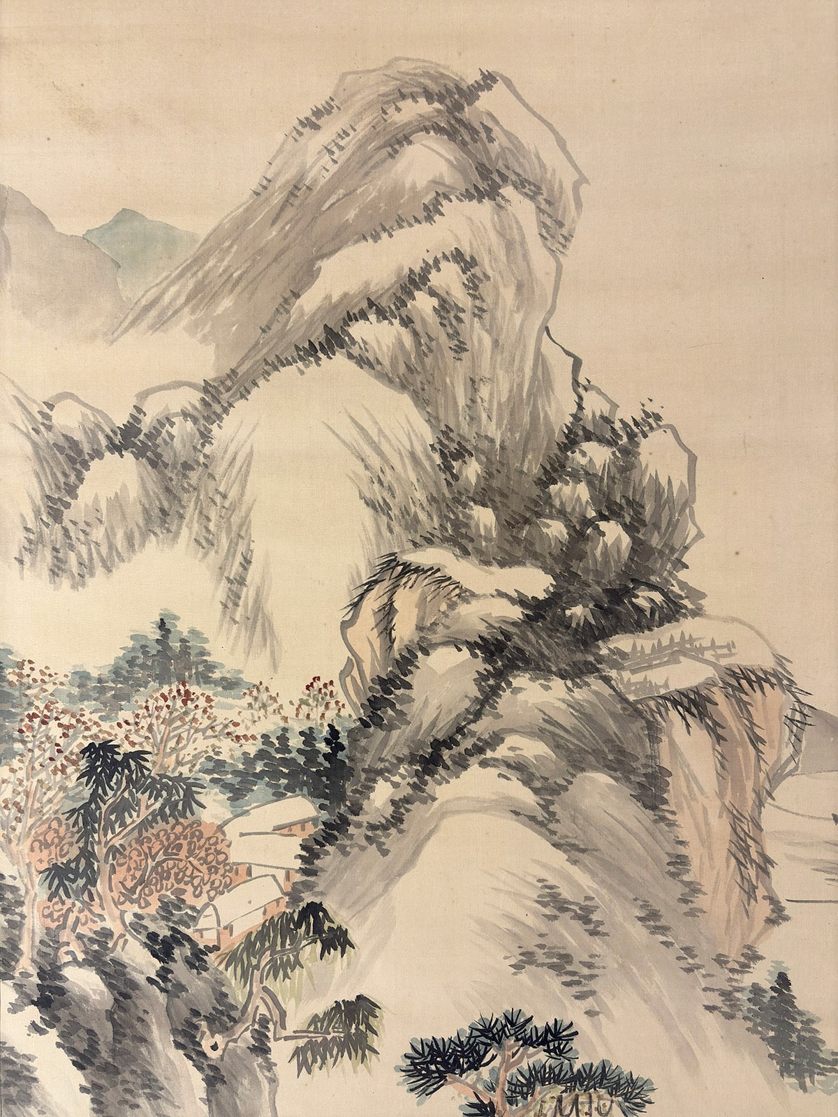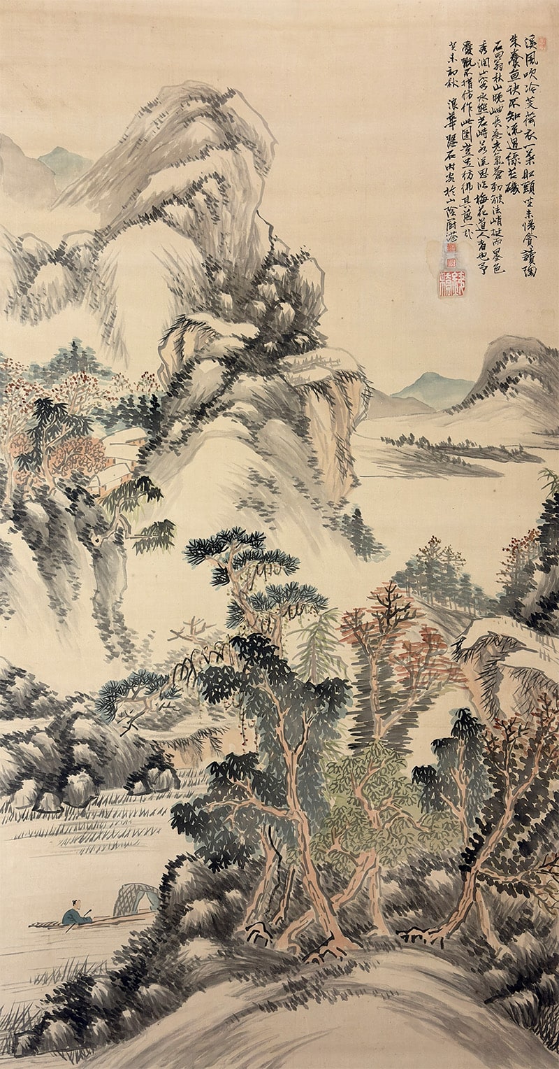 ●帝室技芸員・森琴石による本作は、絹本肉筆の大幅掛軸で、秋景の詩情と南画の余韻が見事に融合しています。