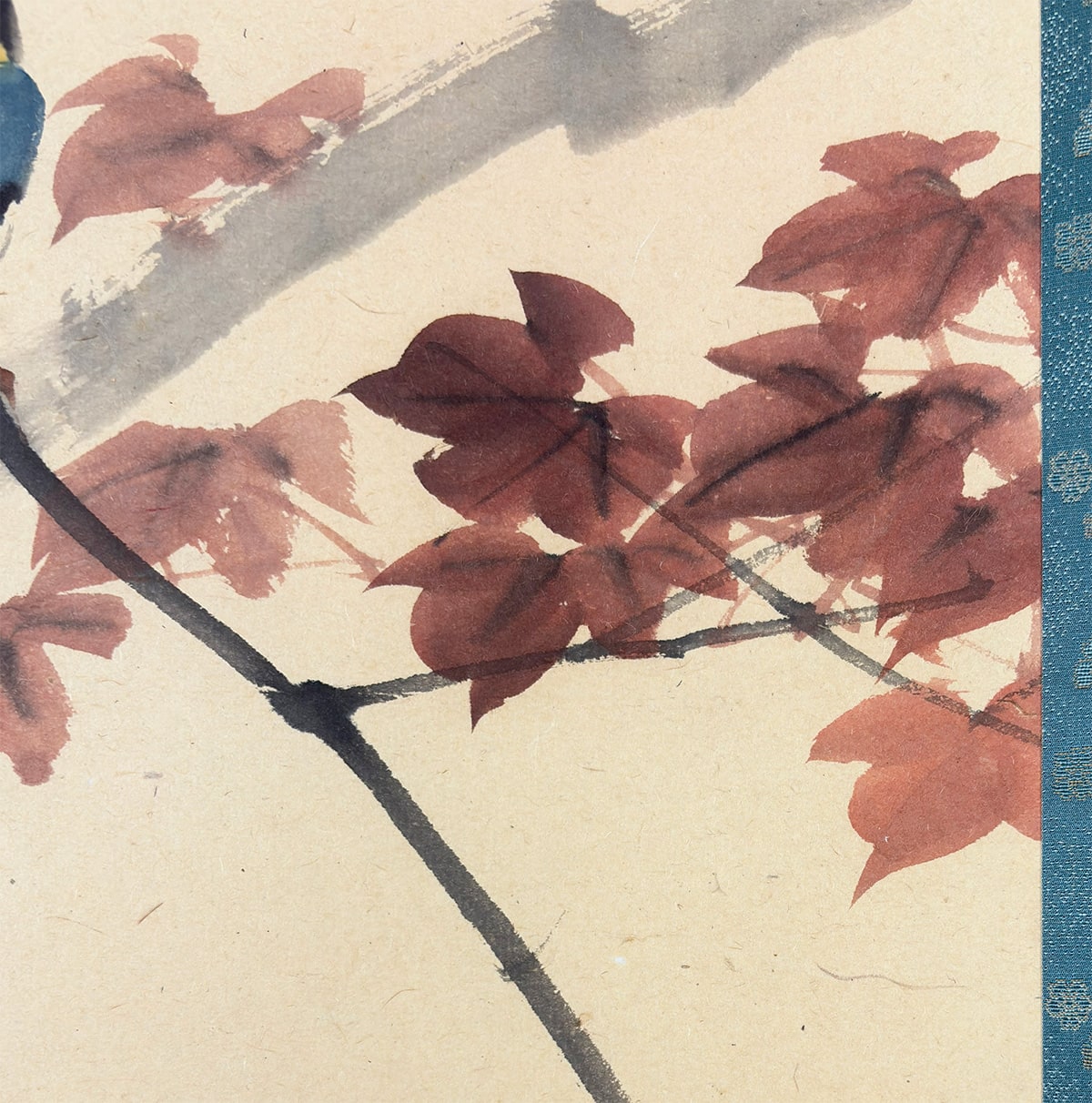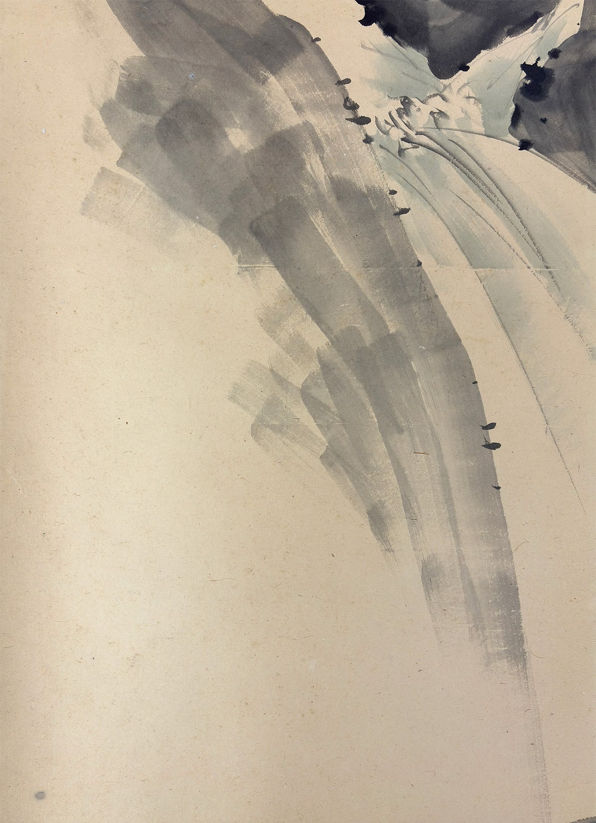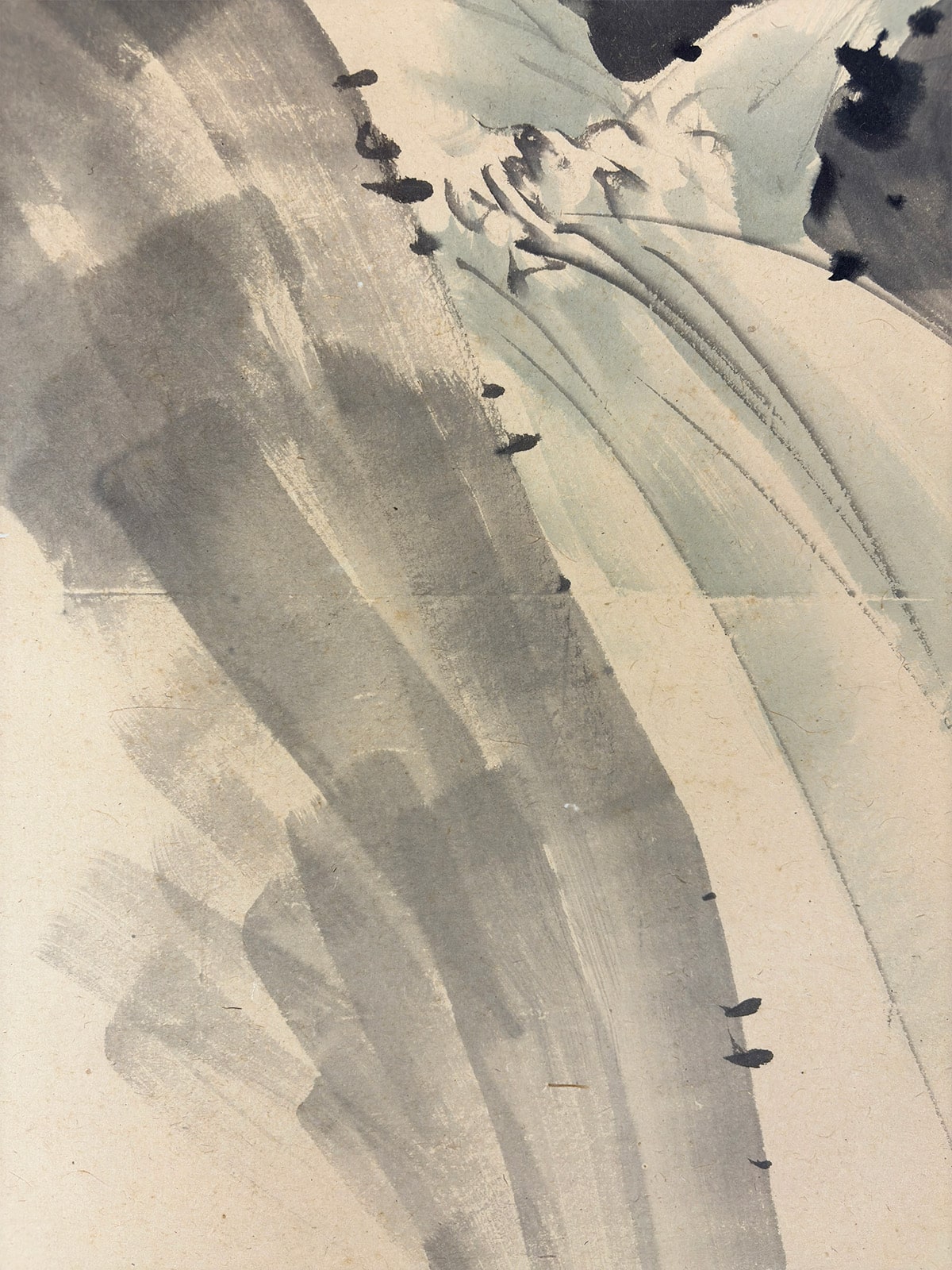 滝の部分にシワのような箇所がありますが、元々本紙についており、その上から重ね描きされたものと思われます。