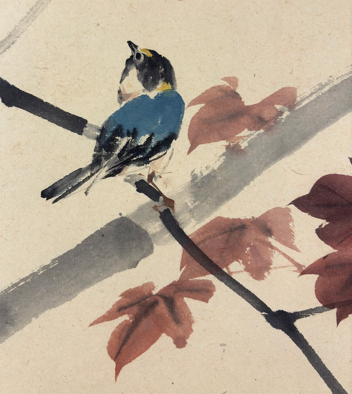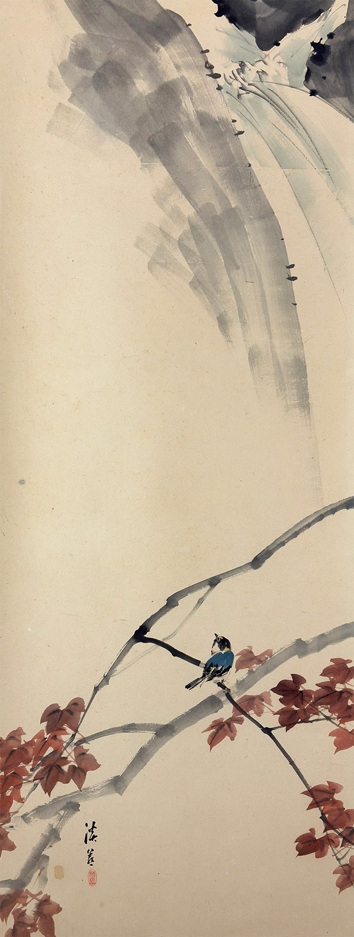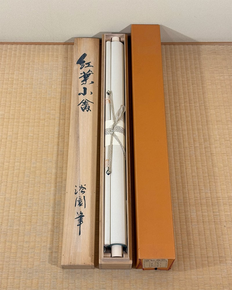 滝の部分にシワのような箇所がありますが、元々本紙についており、その上から重ね描きされたものと思われます。