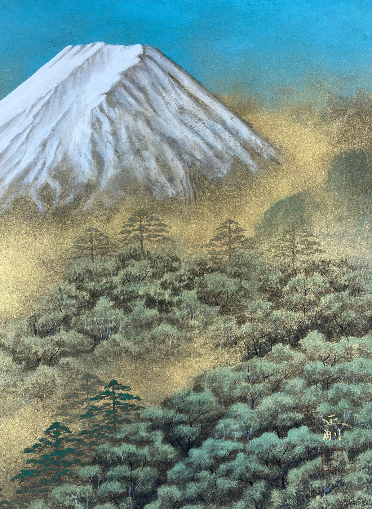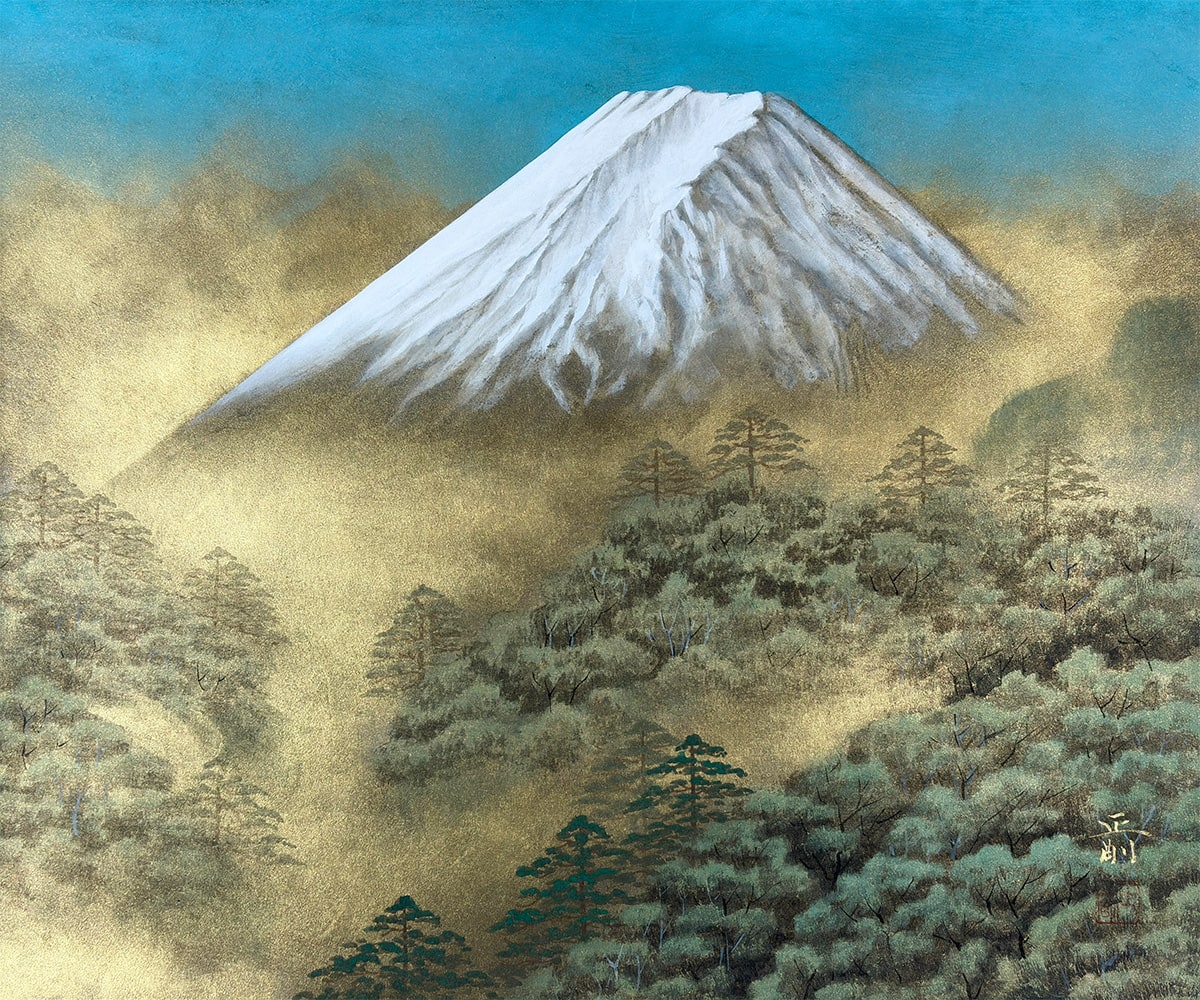 静と動、現実と理想の境界を描く鈴木正則の富士図。空間に、祈りと品格をもたらします。