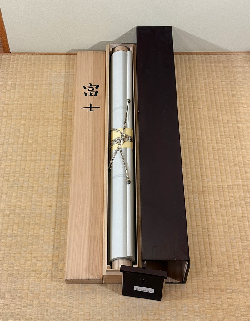太巻き芯棒は岩絵具の剥離や折れ等を防ぎ、作品の状態をできるだけ良好に保つための保存箱です。