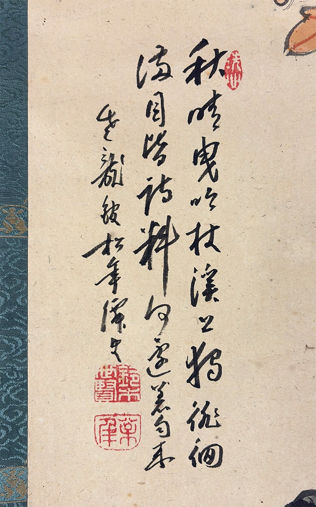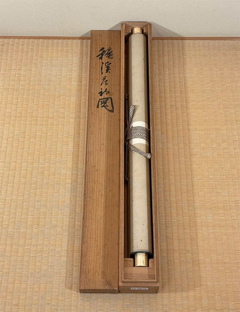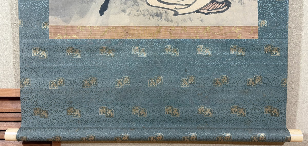 ●表装の裂地も画格にふさわしい上質な金襴裂地があてられた申し分のない仕立になっており、現代の空間にもよくなじみます。