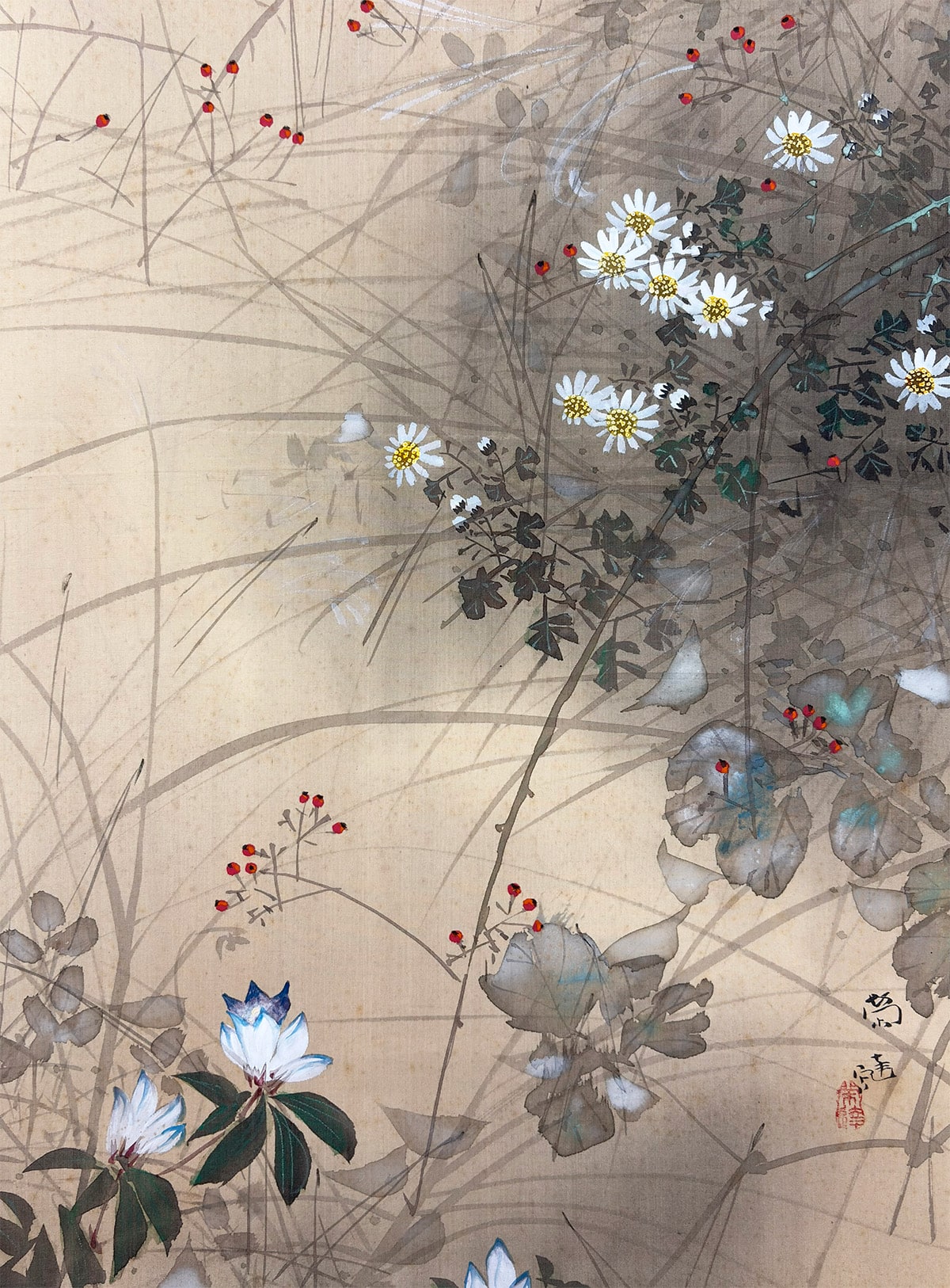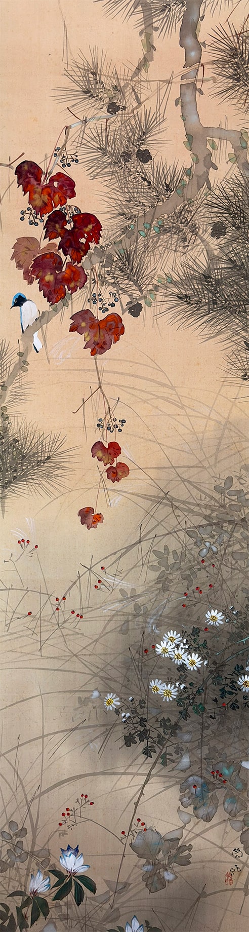●題名「深山の秋」小山 栄達作|絹本(尺幅立)
