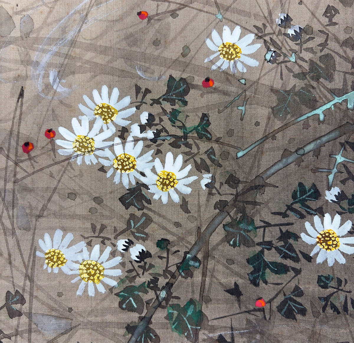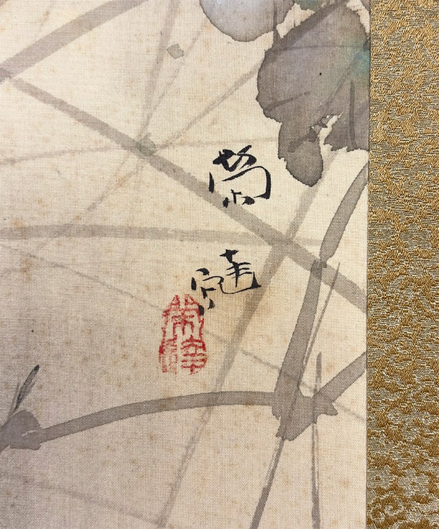 【天地替え済】天地が傷んでいたため、中廻しの元裂を残して新しい裂地に取り替えました。