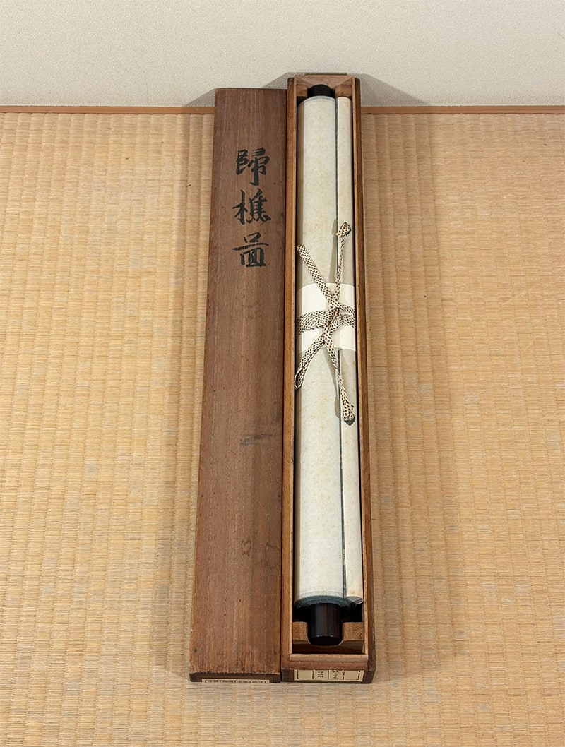 ●「帰樵図」は、古くから文人画などで好まれてきた画題で、自然の中で働く人の姿を通して、季節の移ろいや人の営みを象徴的に描くものです。本作では、星光先生ならではのやわらかな筆致と静かな情感が光り、観る者の心に穏やかな余韻を残します。