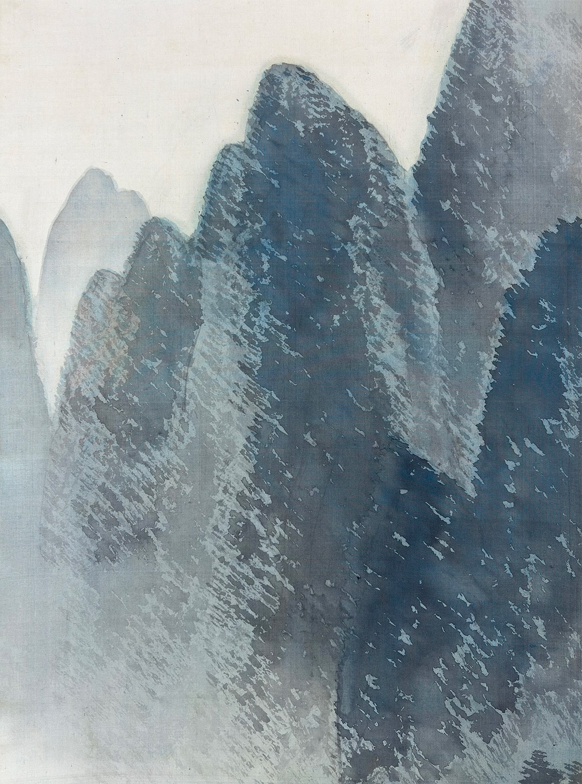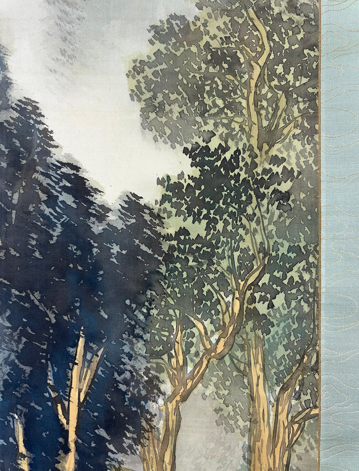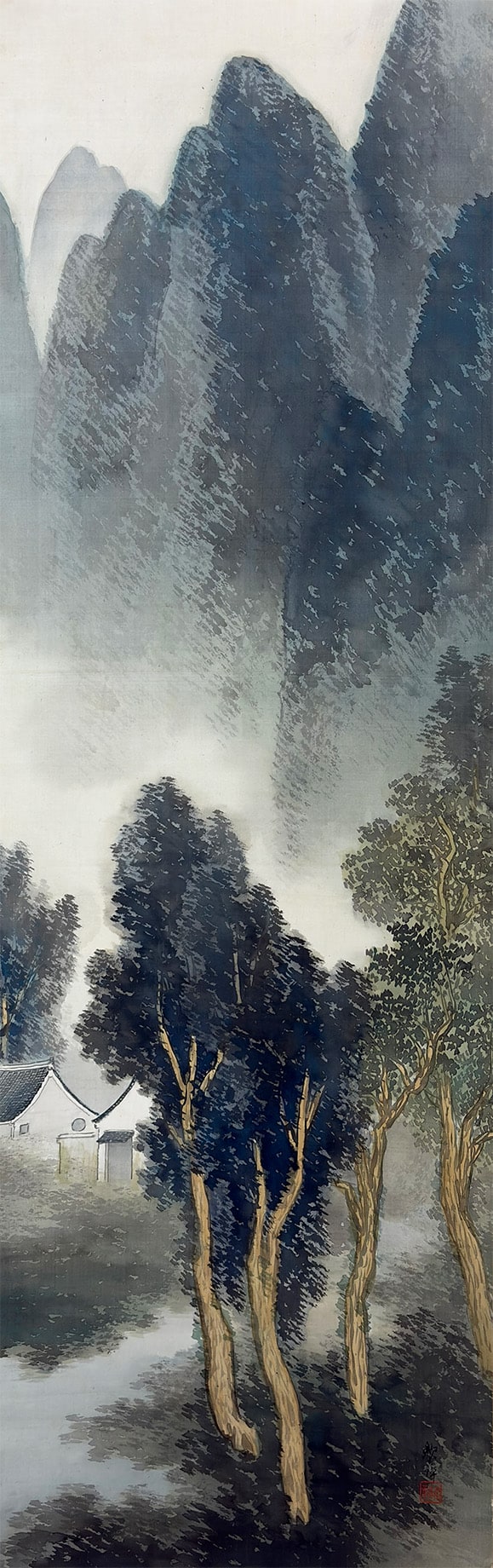 ●中国画の「米法」を基に、霧に包まれた峻嶺と静かな山居が●繊細な筆づかいで描かれ、幽玄な趣が漂います。