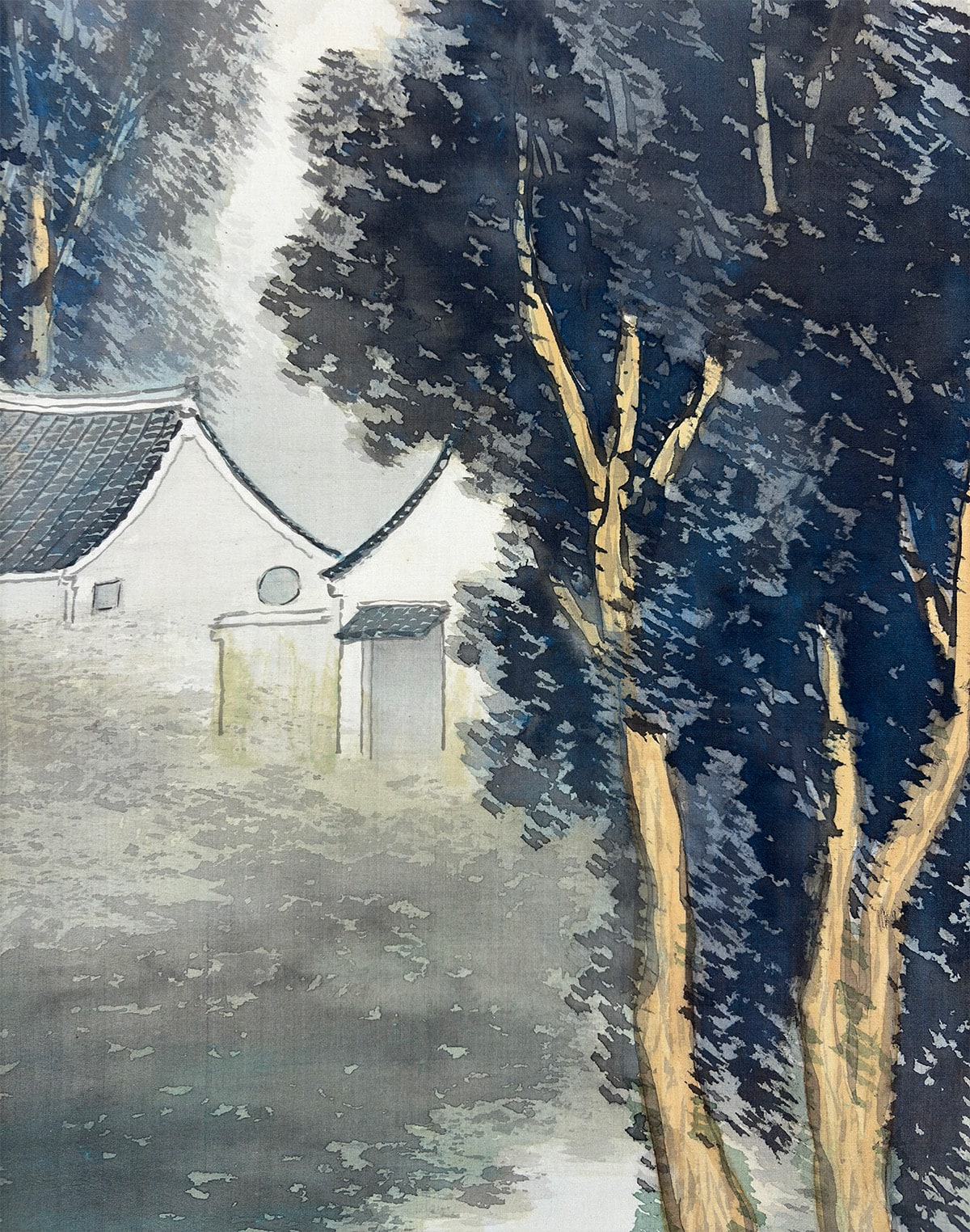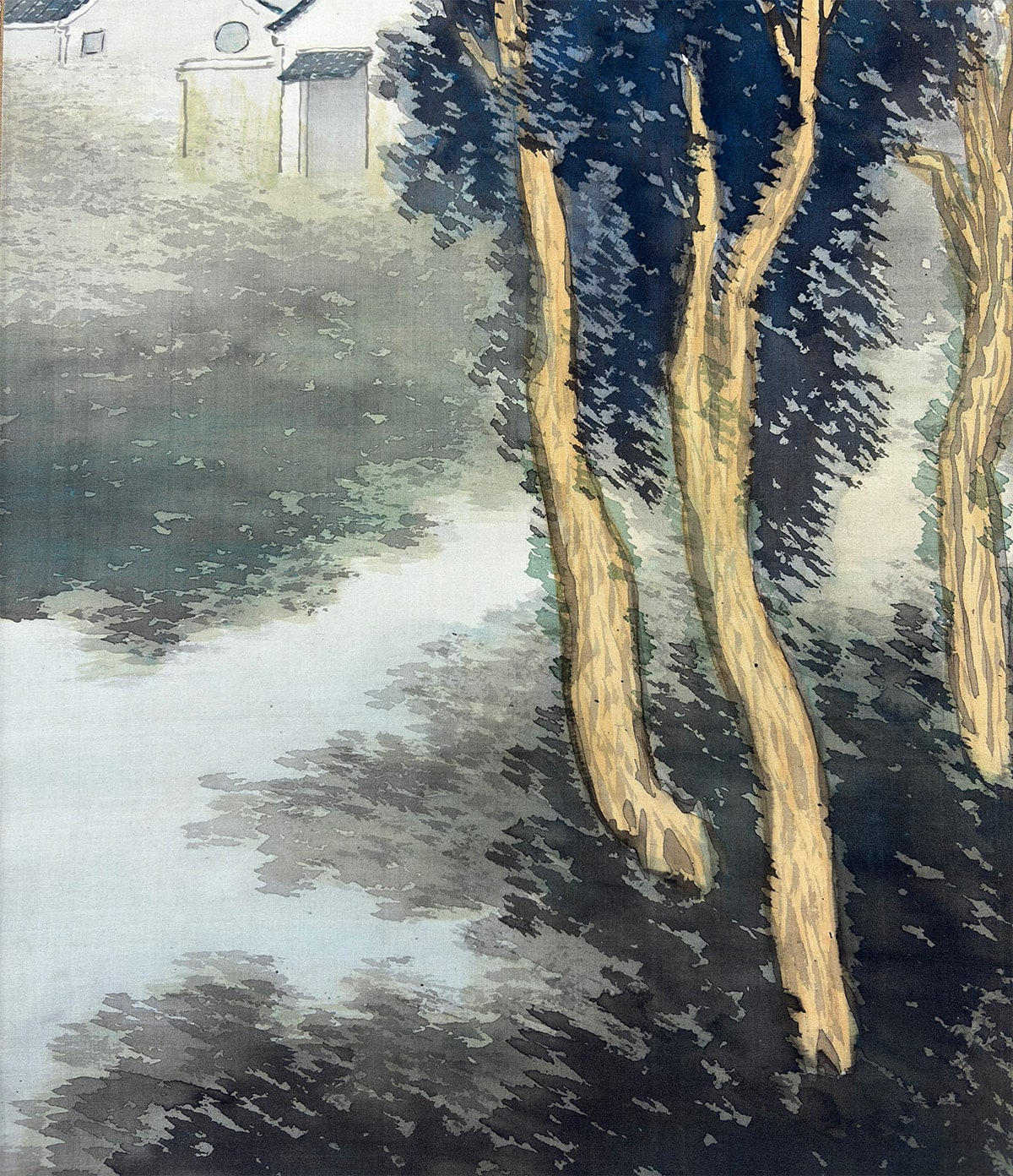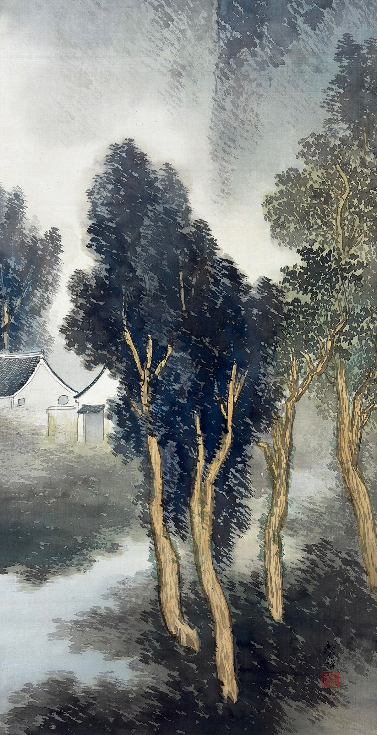 ●中国画の「米法」を基に、霧に包まれた峻嶺と静かな山居が●繊細な筆づかいで描かれ、幽玄な趣が漂います。