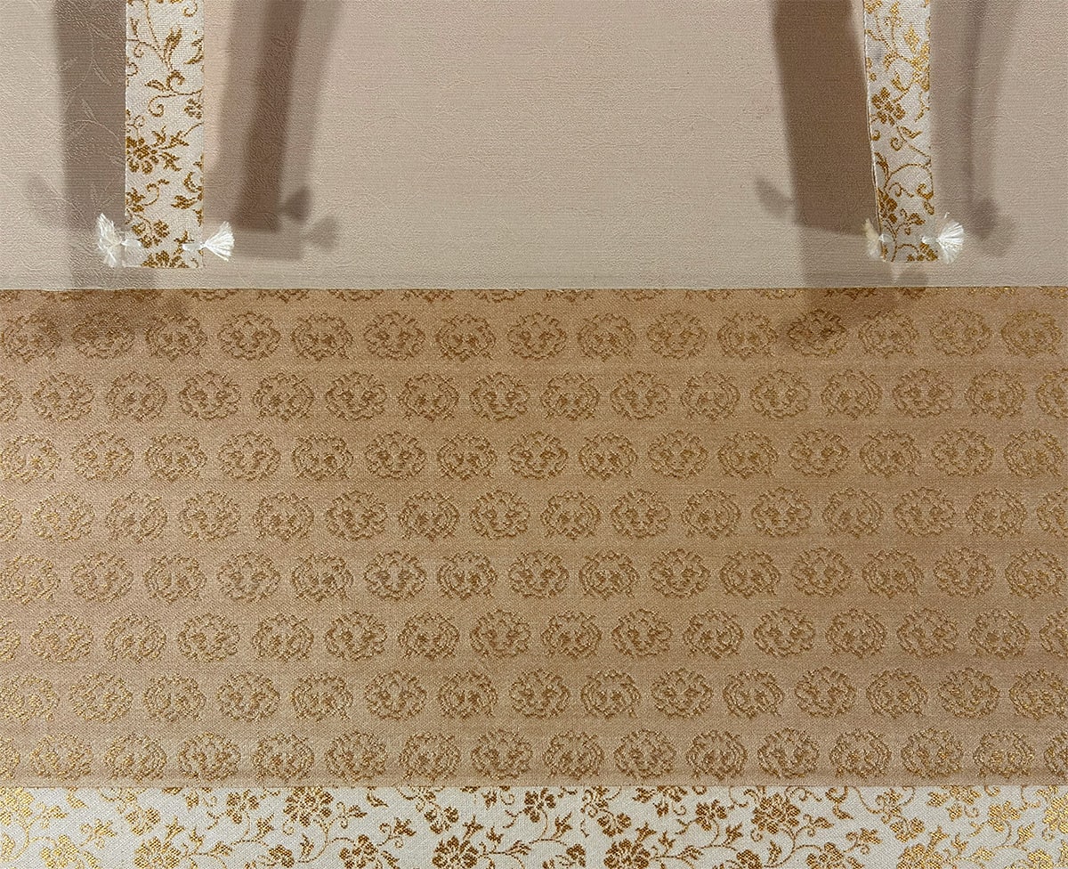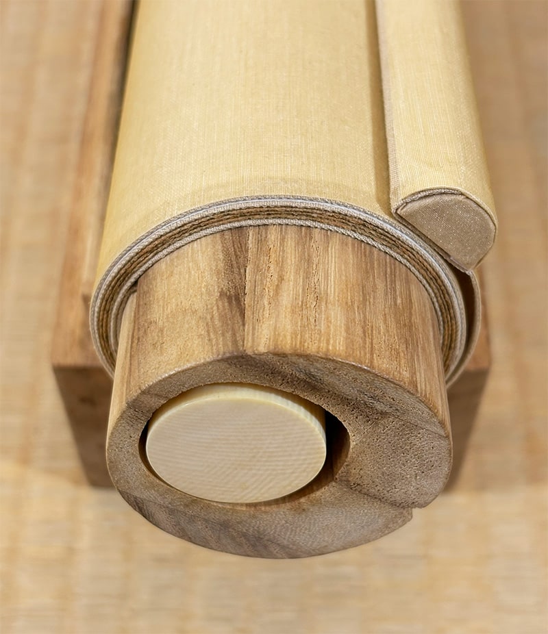 掛軸をしまう時は必ず太巻き芯棒を挟んで巻いてください。