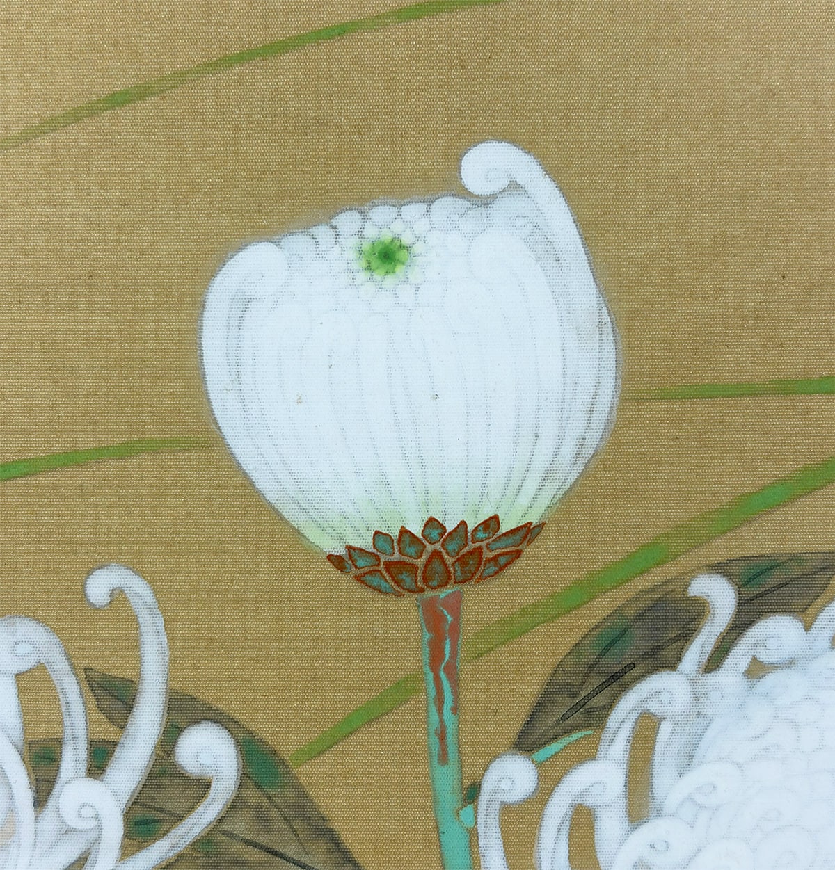 ●白菊は古来より長寿や純潔の象徴とされ、静謐な佇まいの中に凛とした気品が漂います。