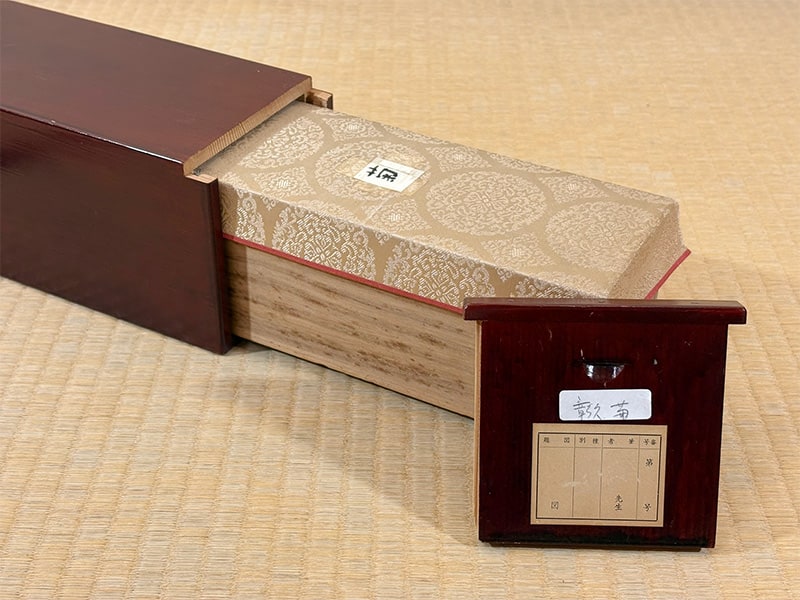 太巻き芯棒は岩絵具の剥離や折れ等を防ぎ、作品の状態をできるだけ良好に保つための保存箱です。