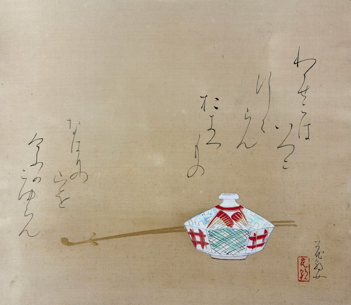 本紙にヤケ、表装の天に少々汚れがありますが、鑑賞には気にならない程度です。