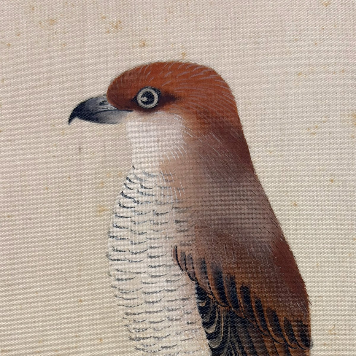 ●百舌の羽の描写は秀逸で、胸元から背にかけての色調の移ろいや、羽根の重なりが繊細に表現されており、自然な立体感と温もりが感じられます。