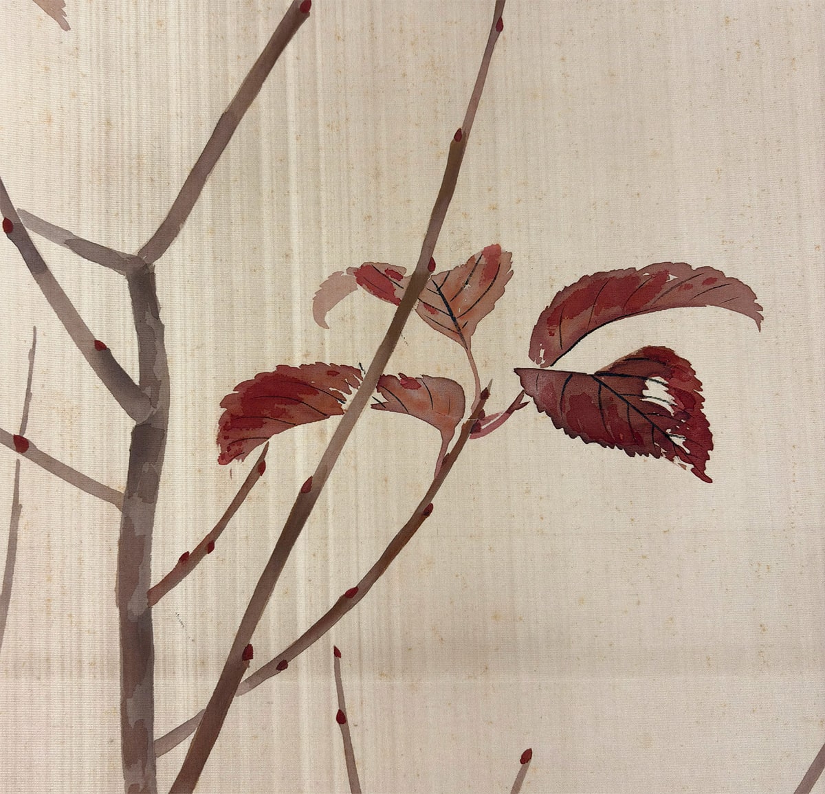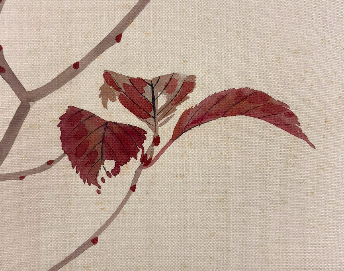 ●背景には、時雨のように繊細な縦筋が施され、晩秋の空気感を見事に表現しています。