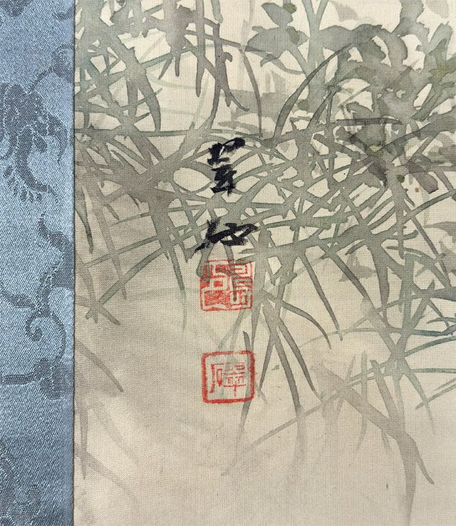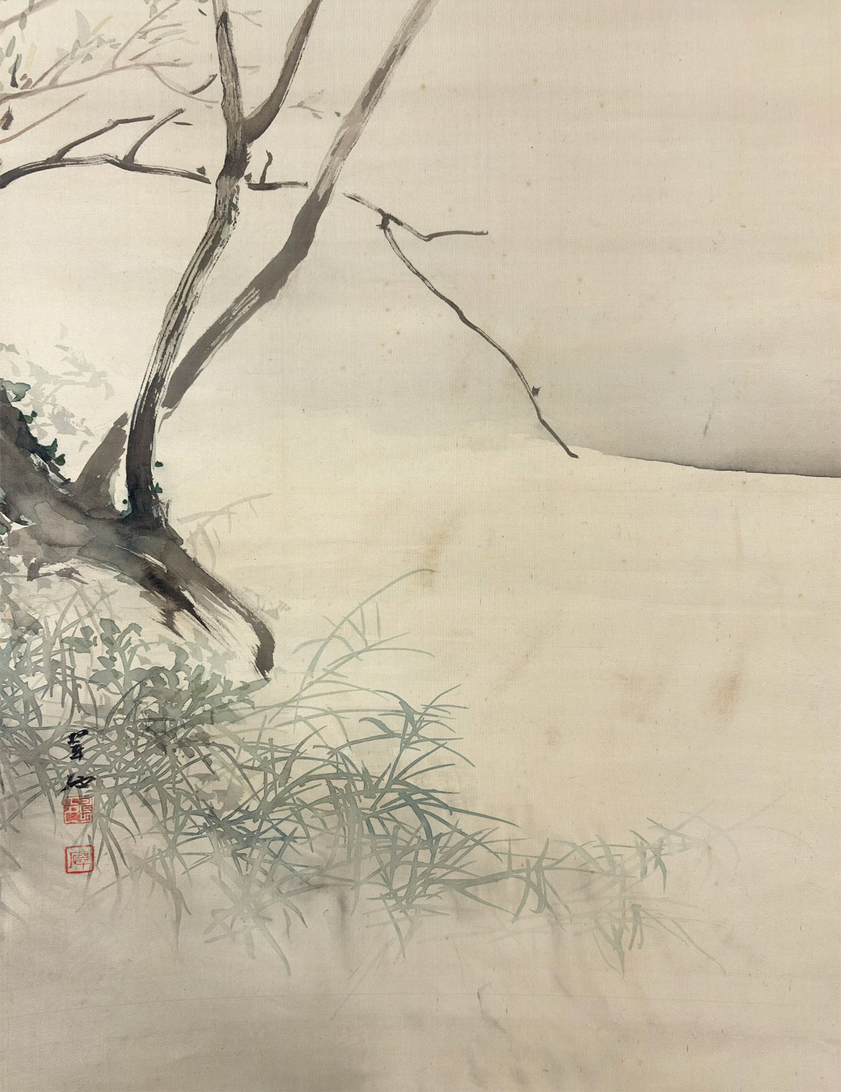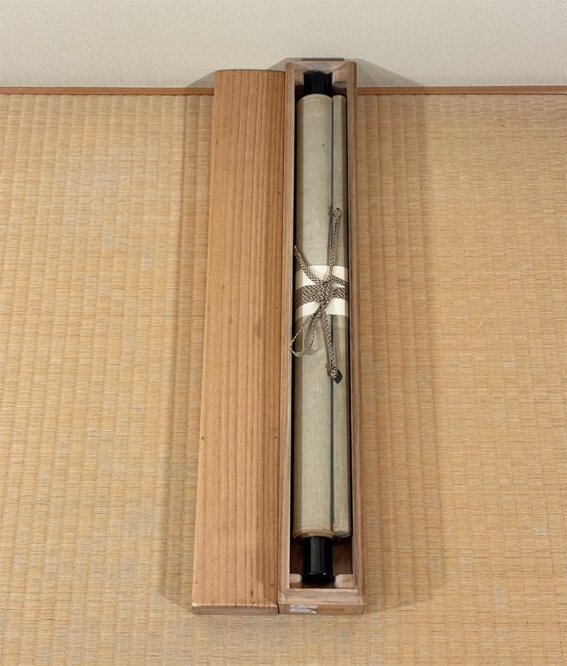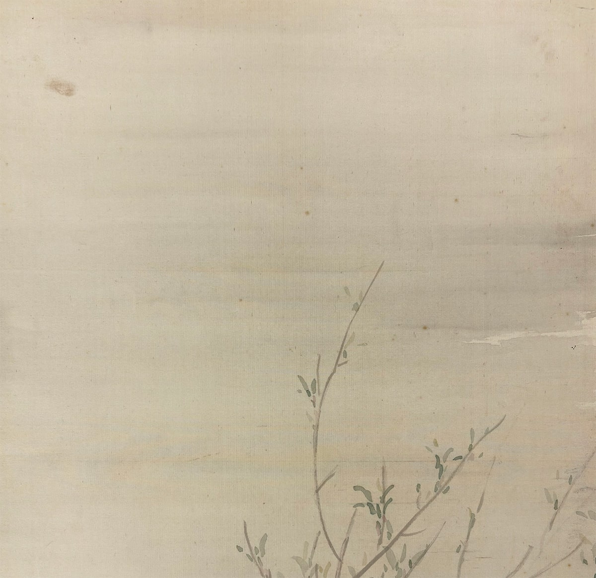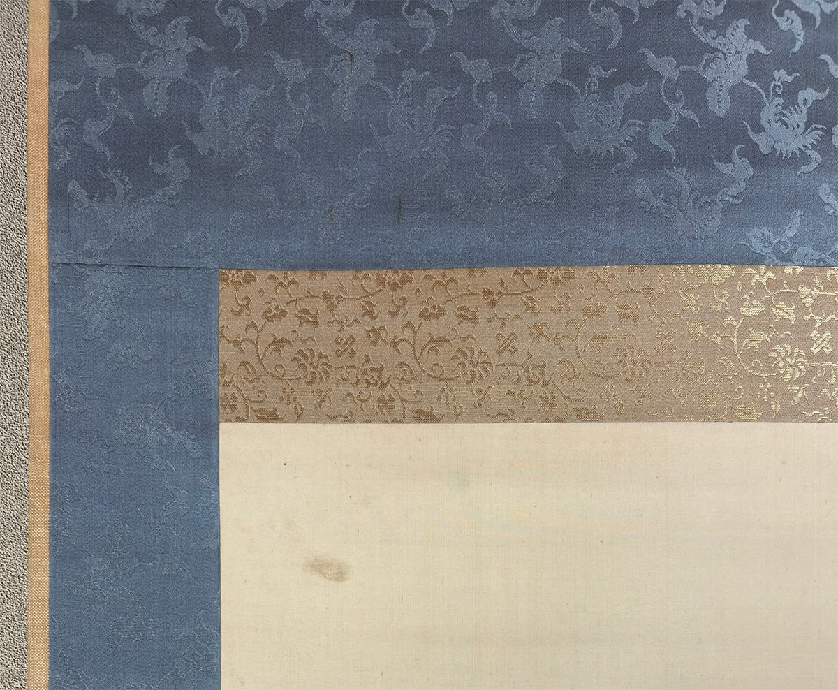 本紙にヤケと汚れ、表装上部に軽い折れと虫食いがありますが、鑑賞には気にならない程度です。