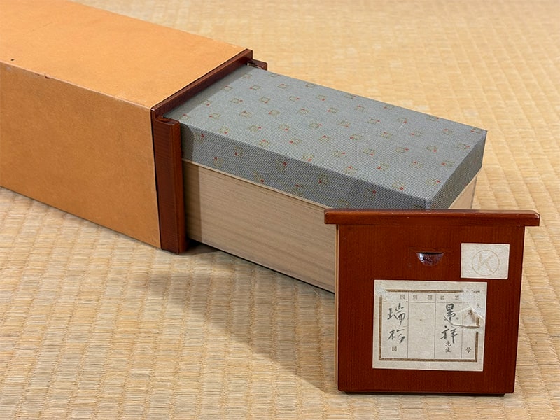 太巻き芯棒は岩絵具の剥離や折れ等を防ぎ、作品の状態をできるだけ良好に保つための保存箱です。