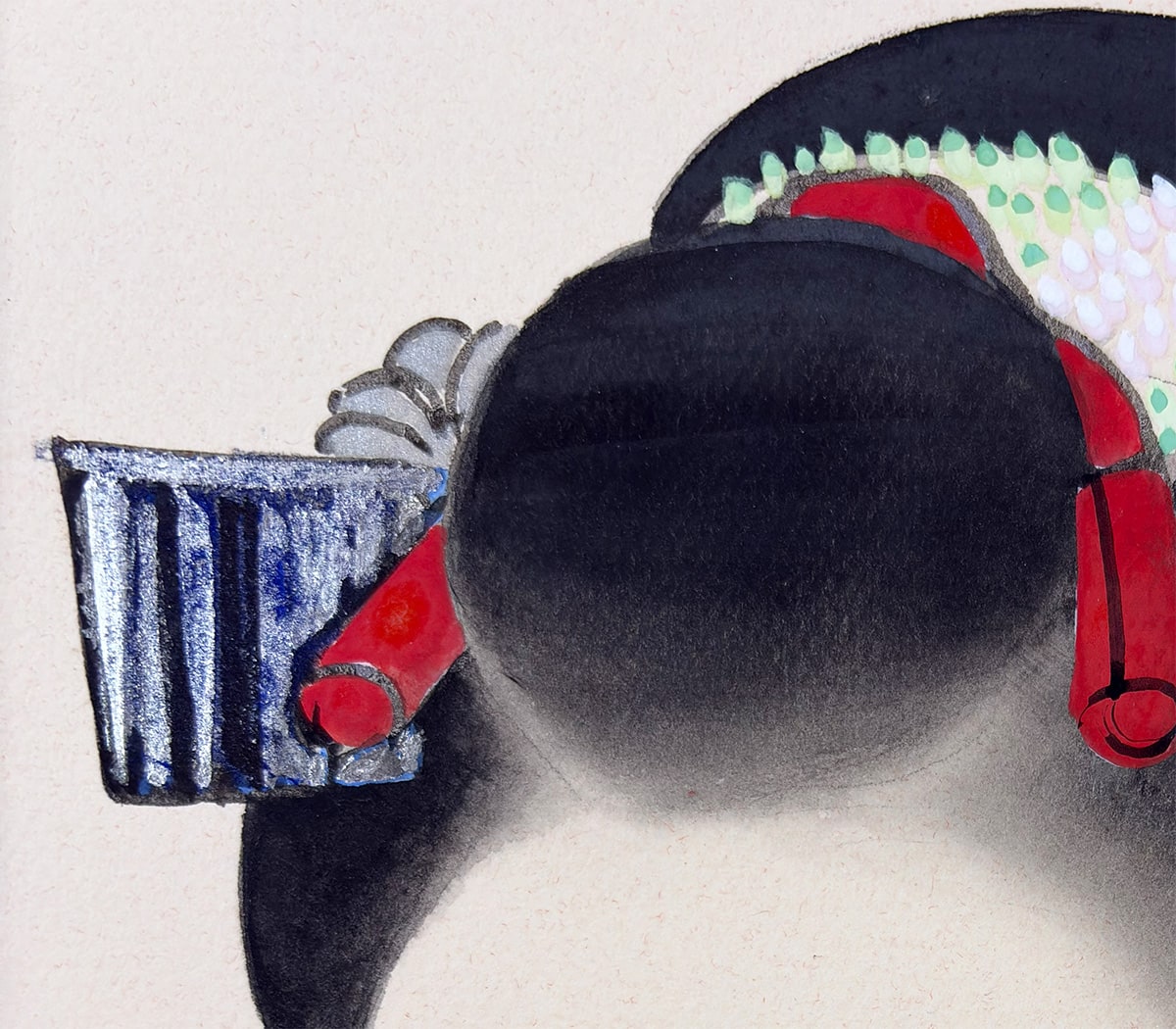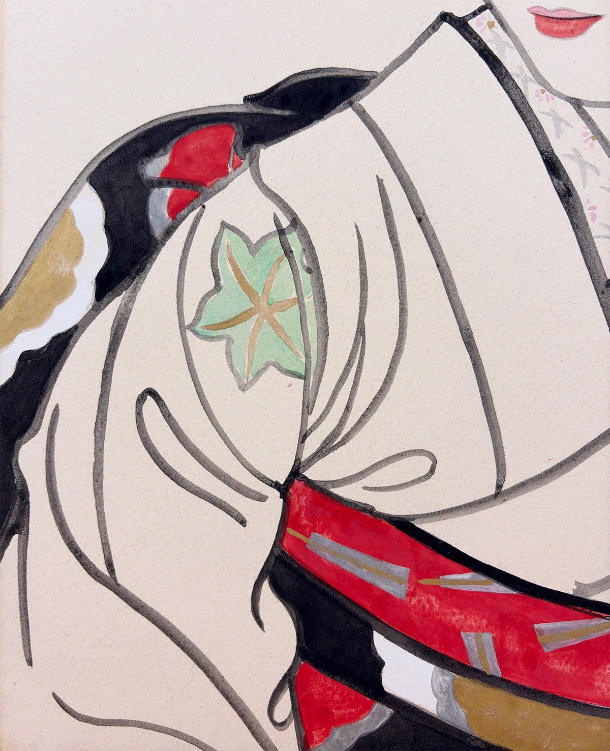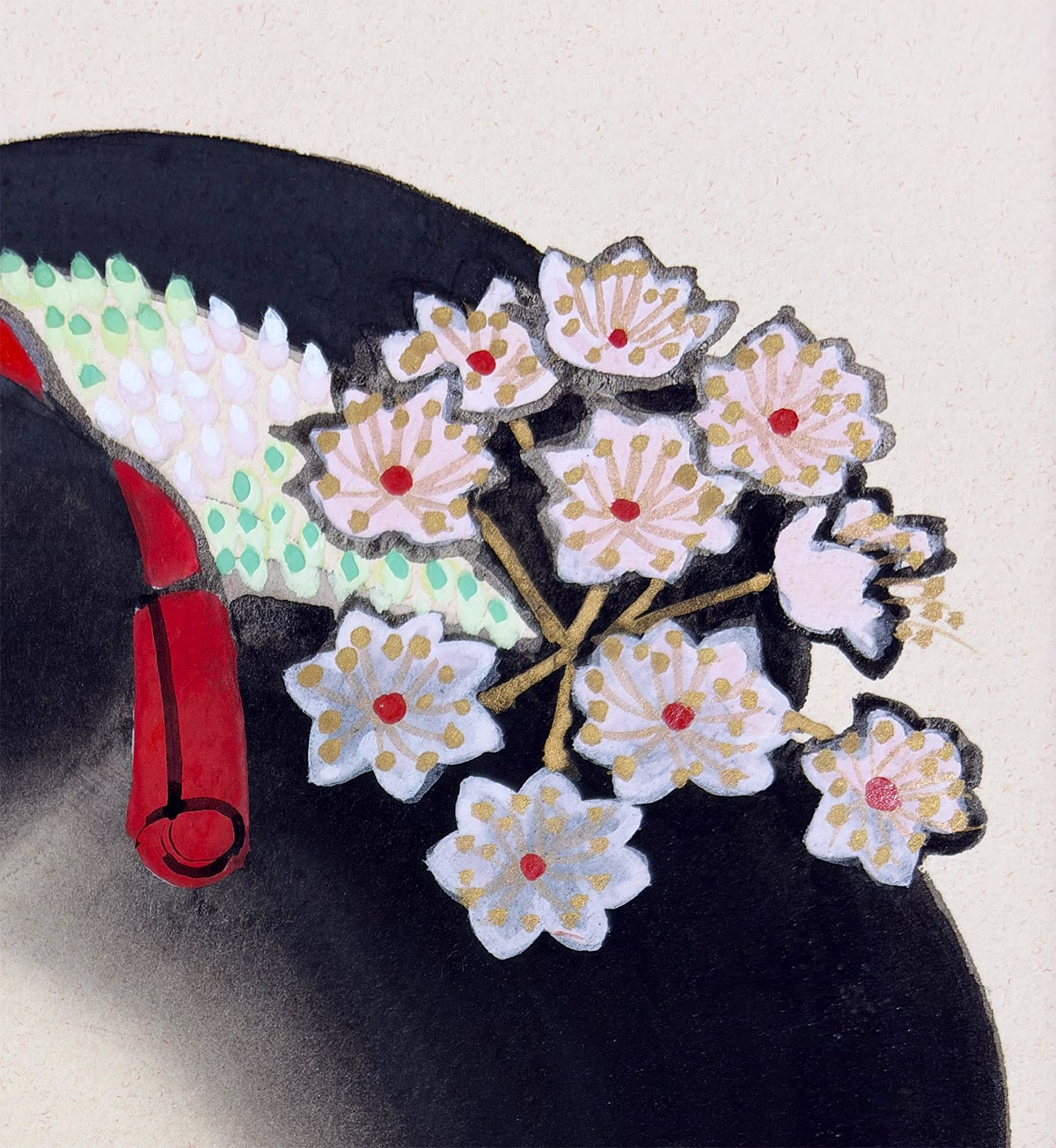 舞妓の誇り高い気高さを損なうことなく、すっきりとした仕立てでまとめられており、絵の美しさをより引き立てています