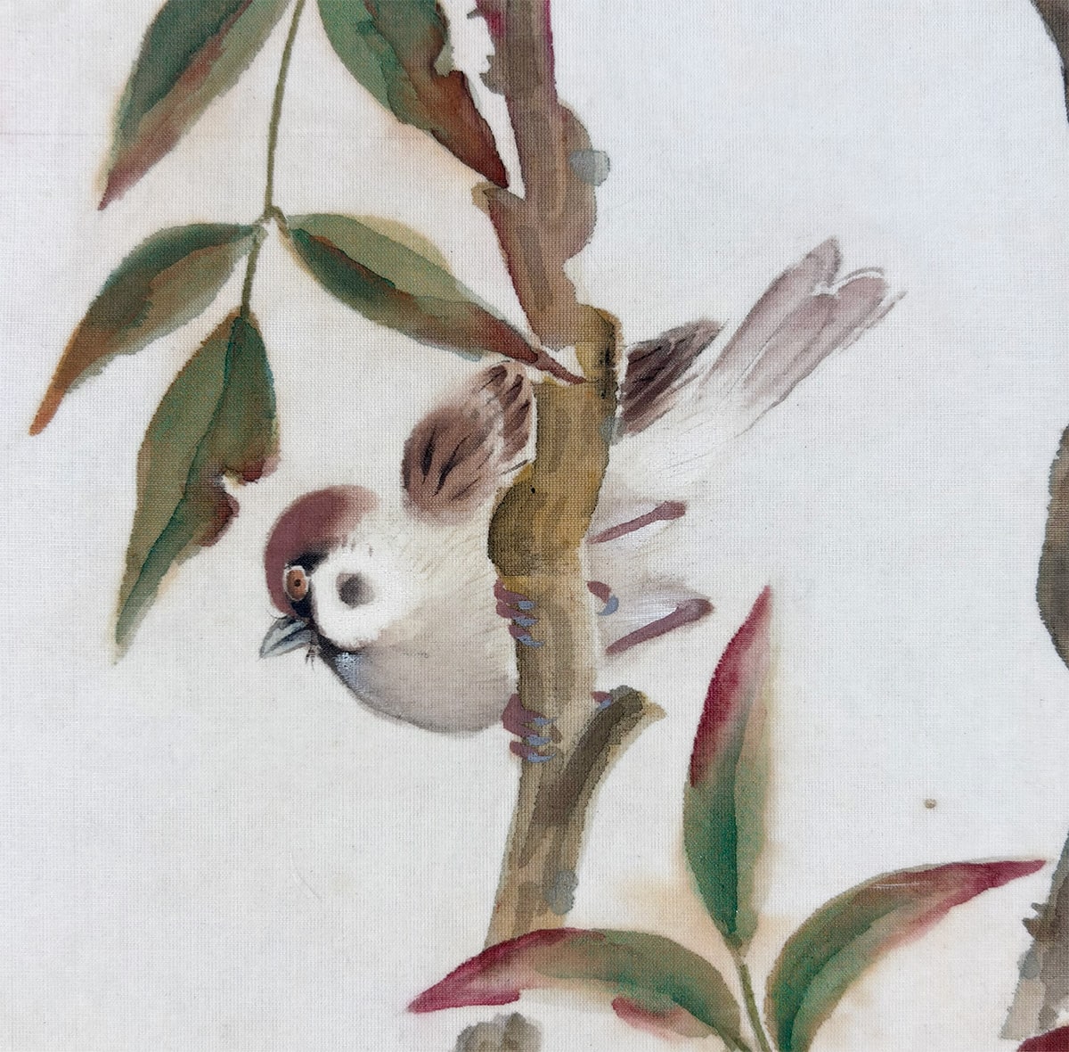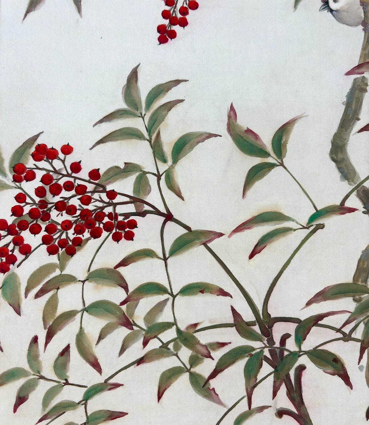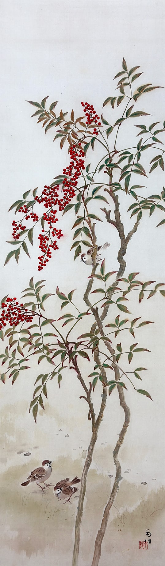 ●榊原佳山作 (初号・雨村)南天雀 尺五立 絹本