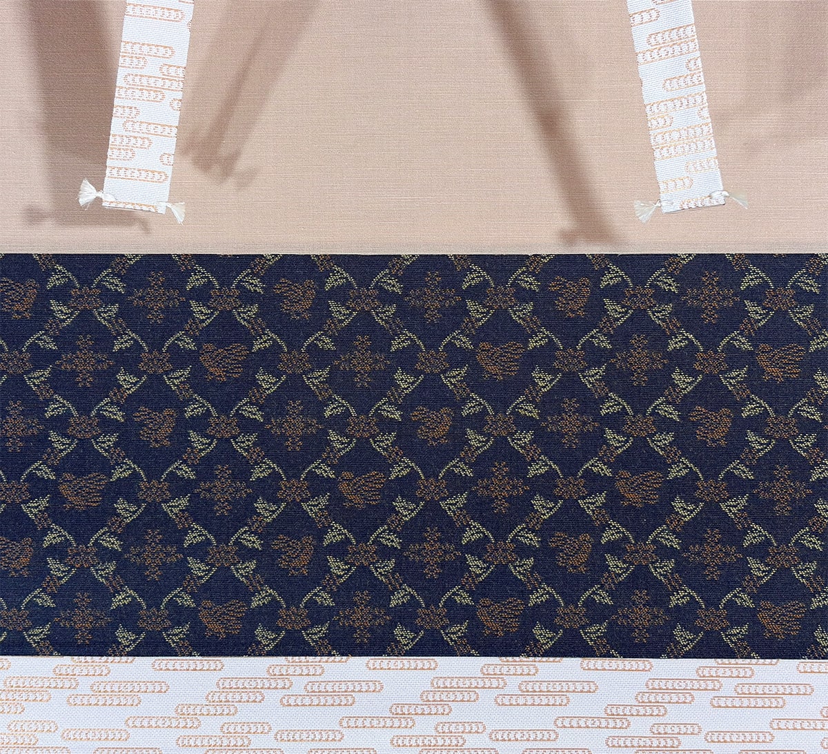 表具は濃紺の中廻しに淡紅の天地を配し、冬の景にふさわしい品格と落ち着きを備えています。