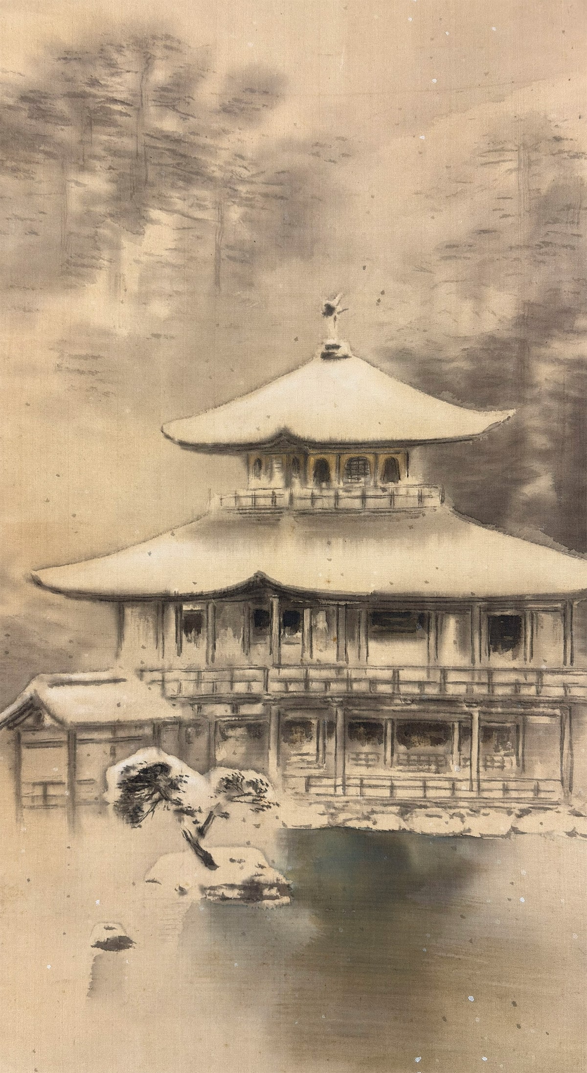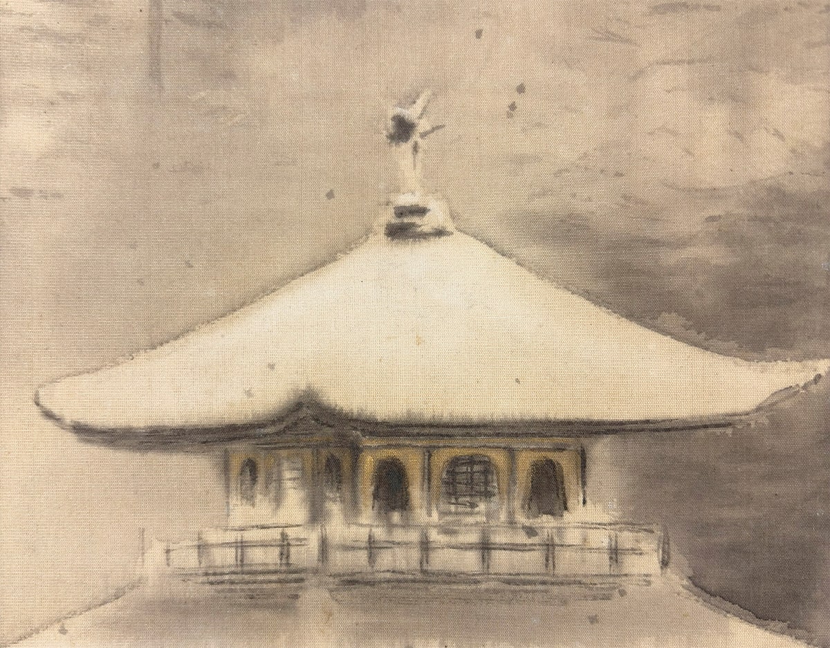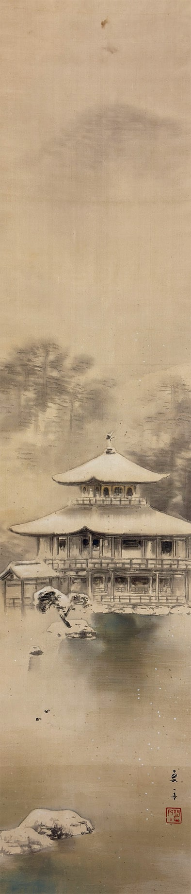 ●川村曼舟《名苑暁雪(金閣寺図)》絹本(尺幅立)