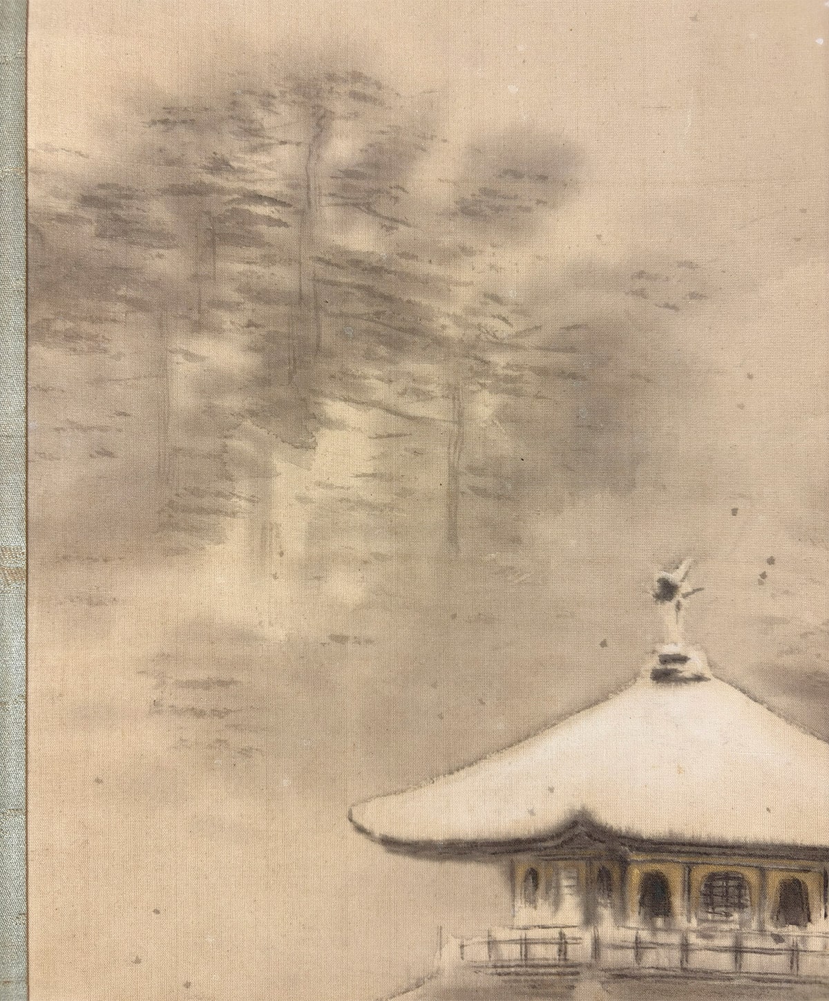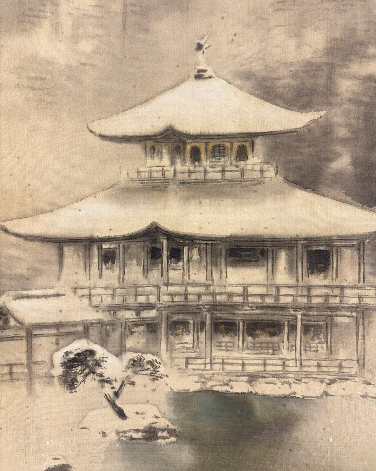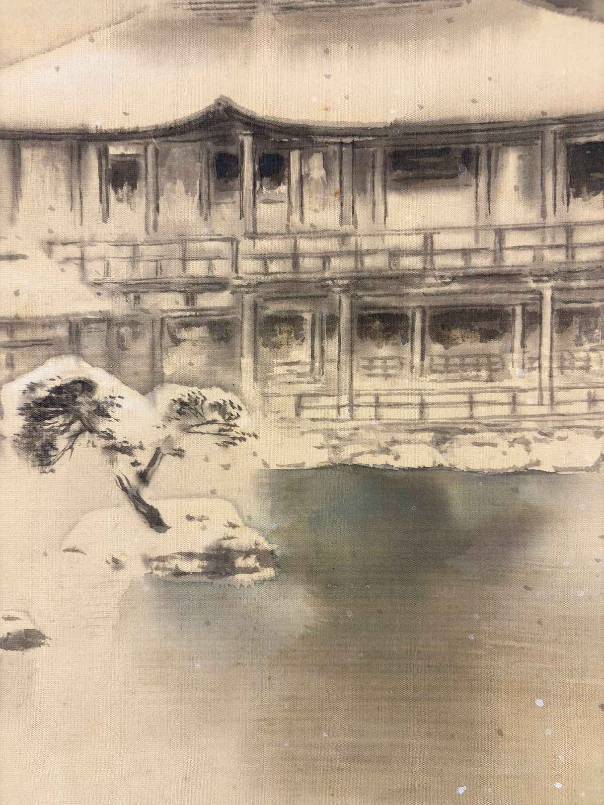 ●川村曼舟《名苑暁雪(金閣寺図)》絹本(尺幅立)