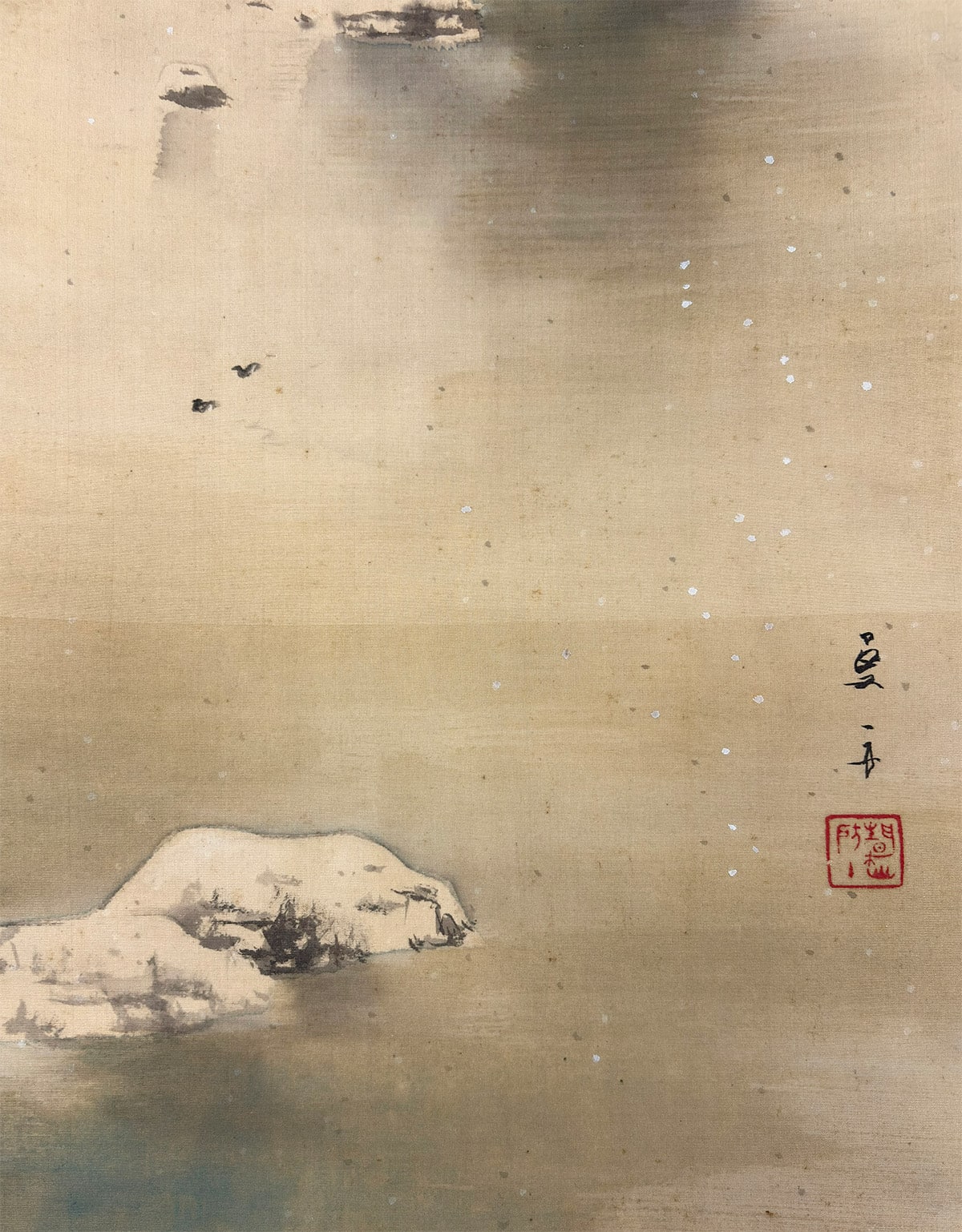 墨の濃淡を巧みに使い分けることで、景色の深みや空気の冷たさが表現されています。