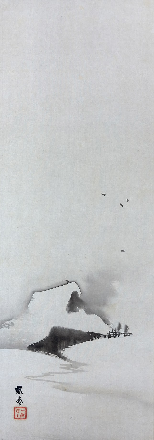●山元 春挙 【雪中茅屋】ミニ掛軸