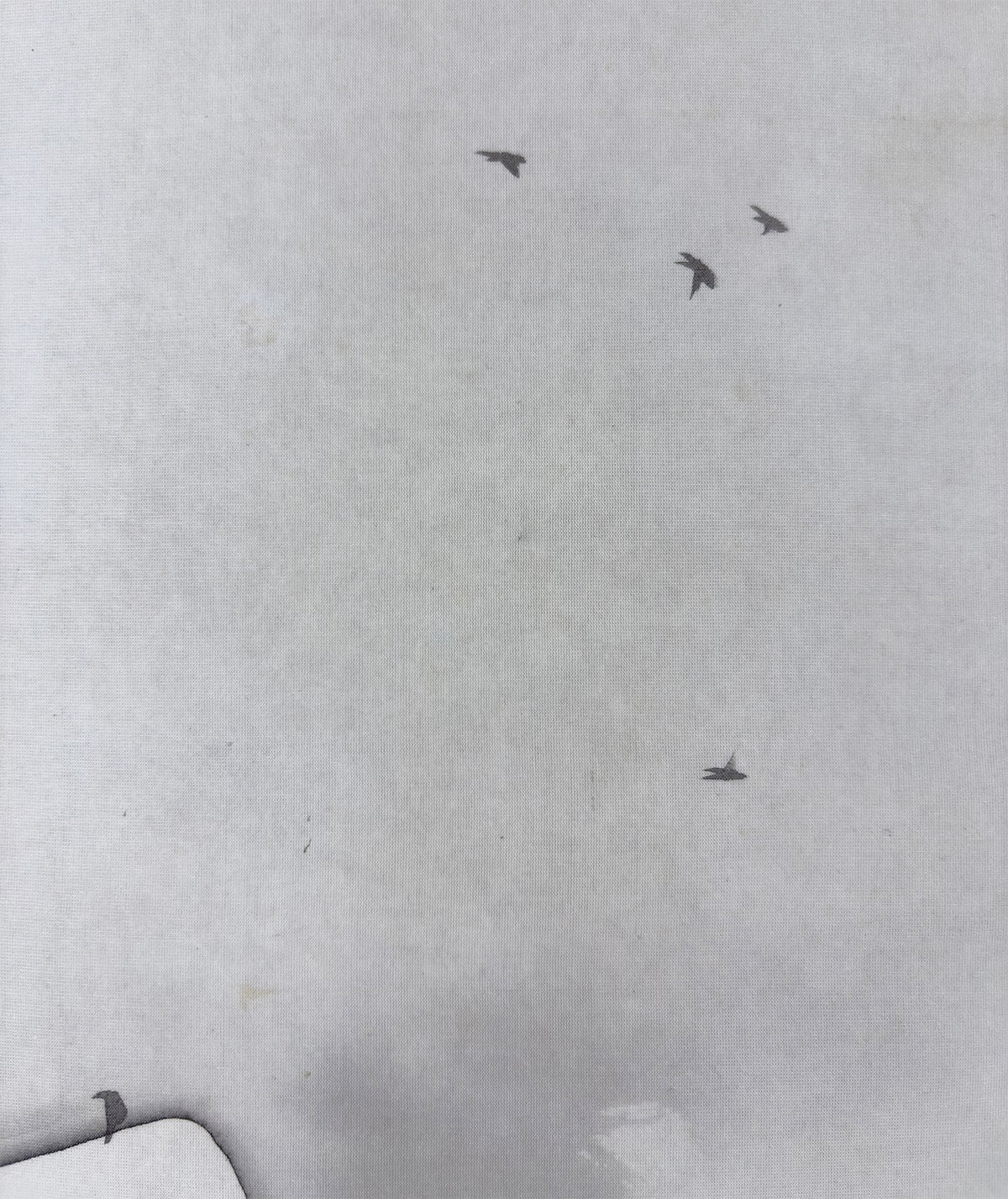 ●墨の濃淡と余白を活かした表現により、雪の冷たさと自然の静寂がしみじみと伝わってきます。