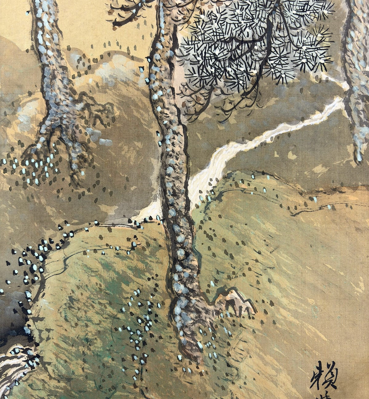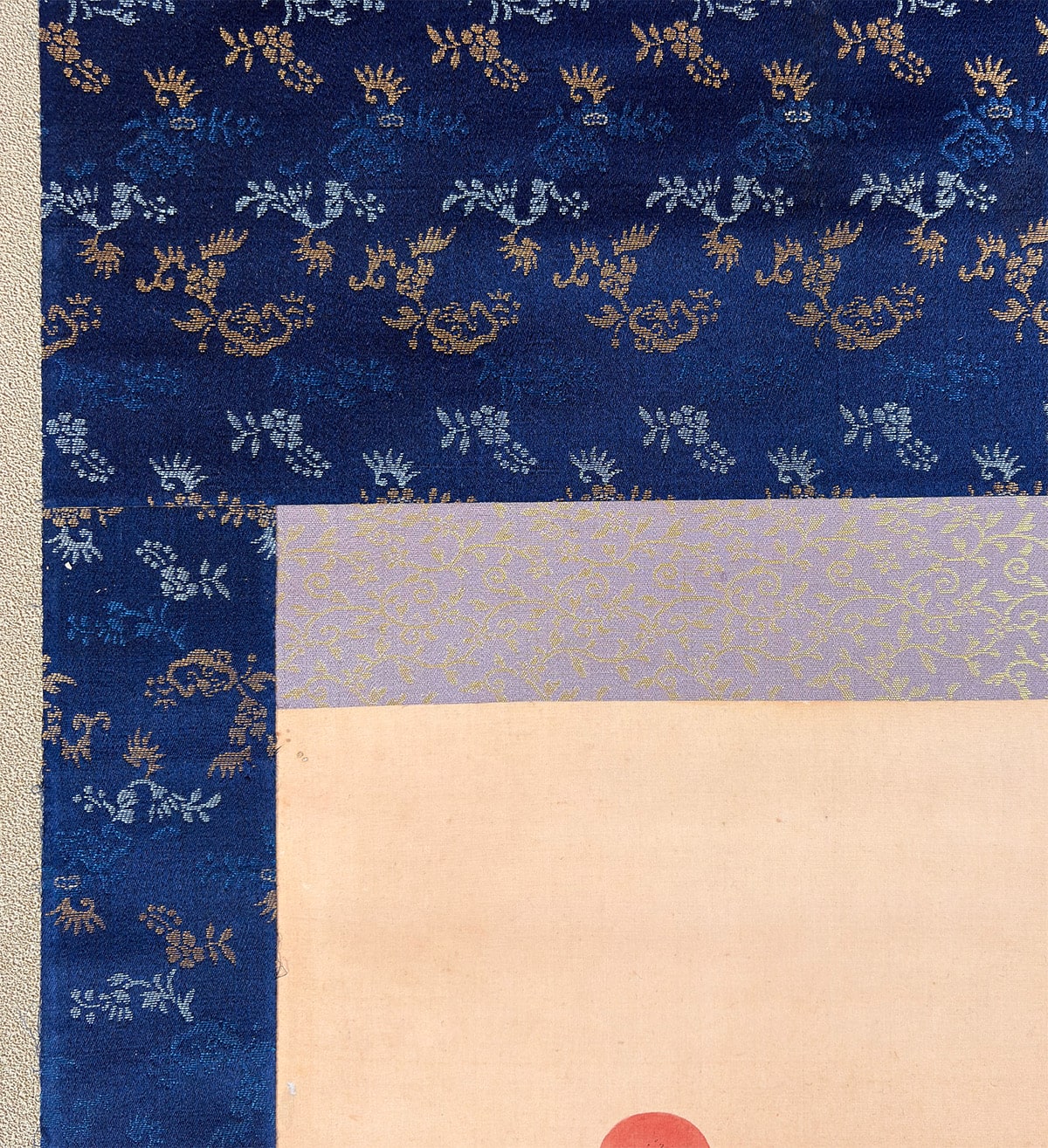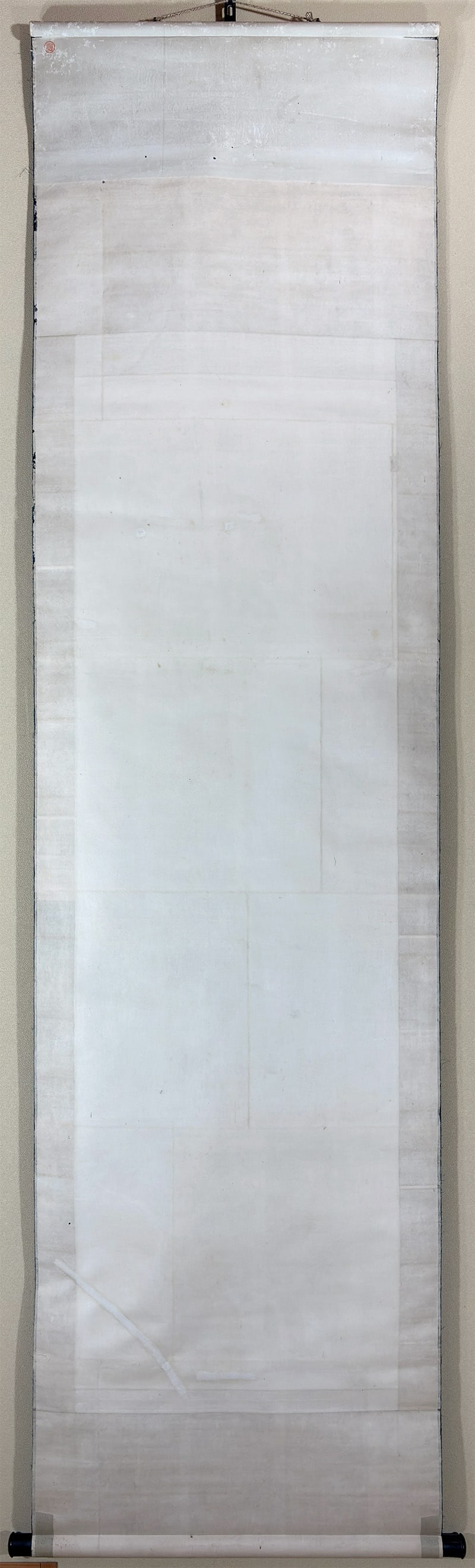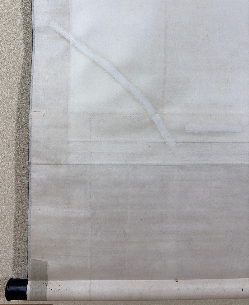 本紙下部に折れ直しの跡、表装の右柱に虫食いの跡がありますが、共におおむね良好です。