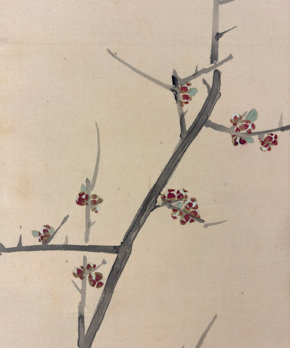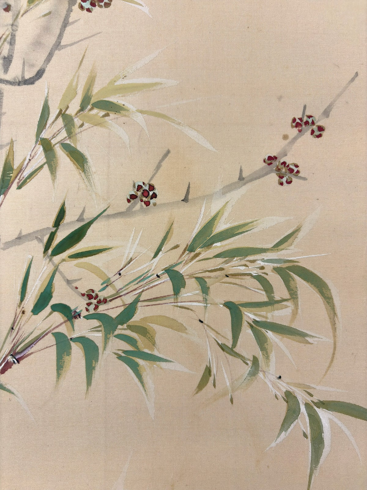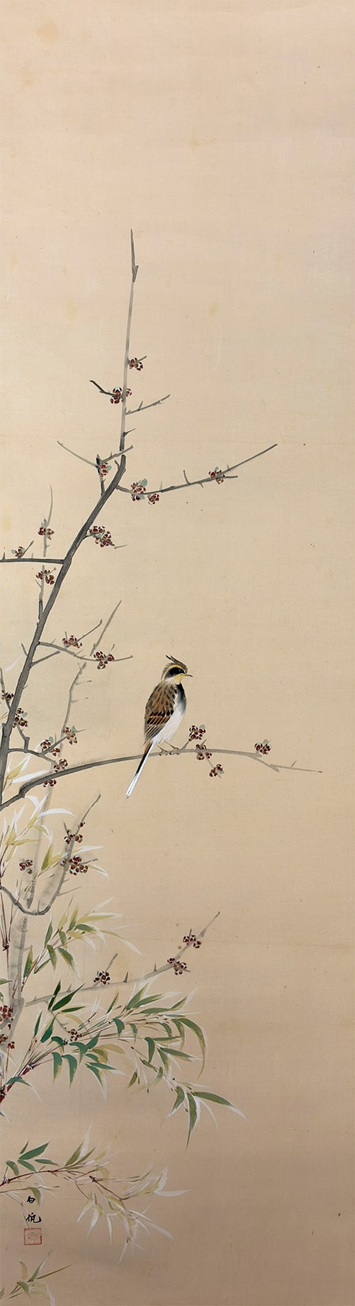 ●春の気配がまだ浅い頃、野に残る実と小鳥の姿をそっと描いた一幅です。