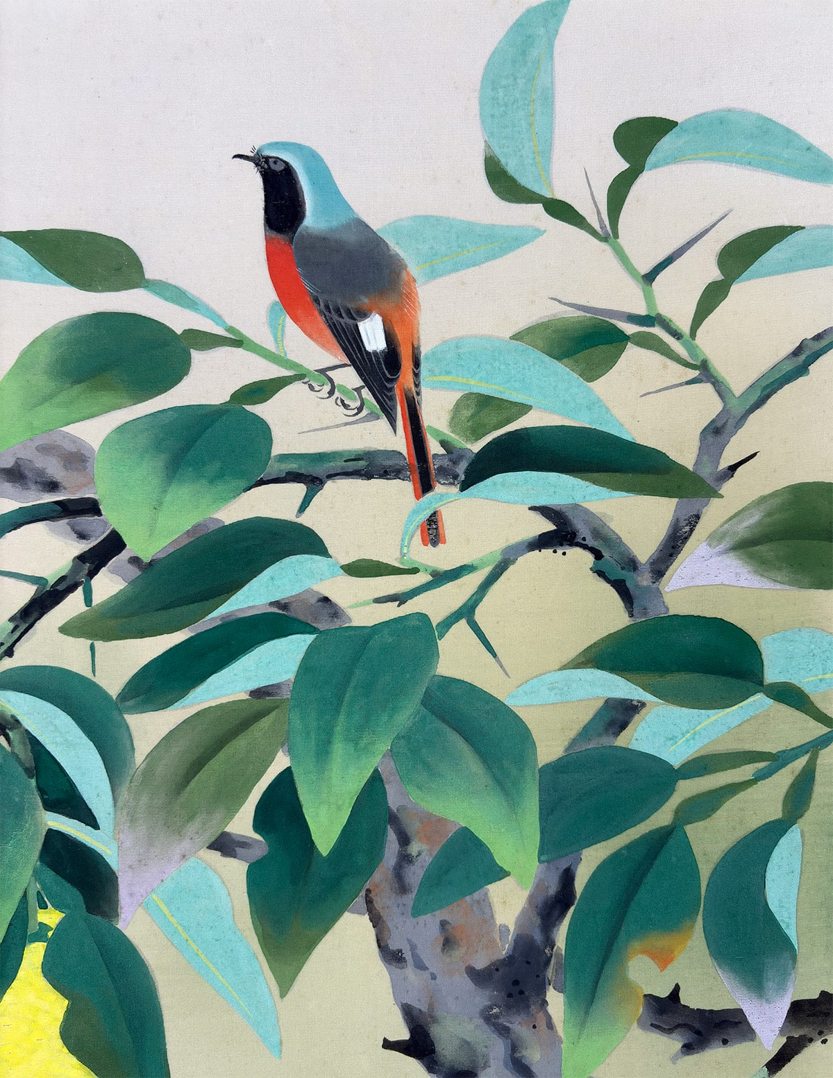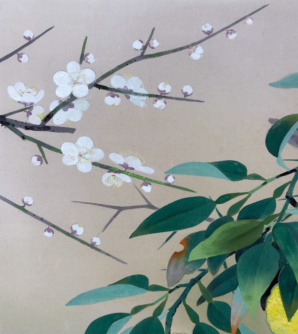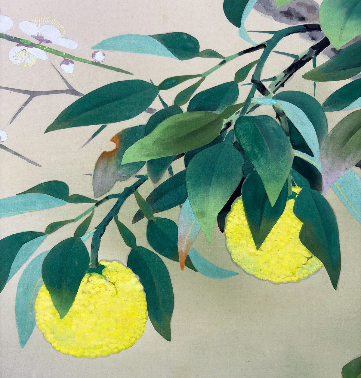 ●大矢大響《早春(柚子小禽)》絹本(尺八横)