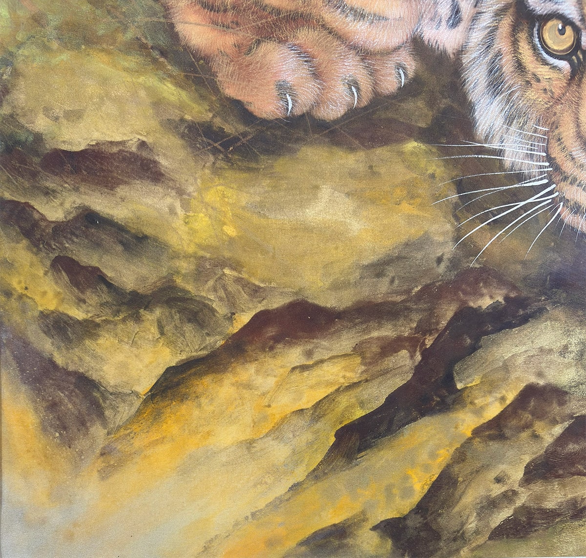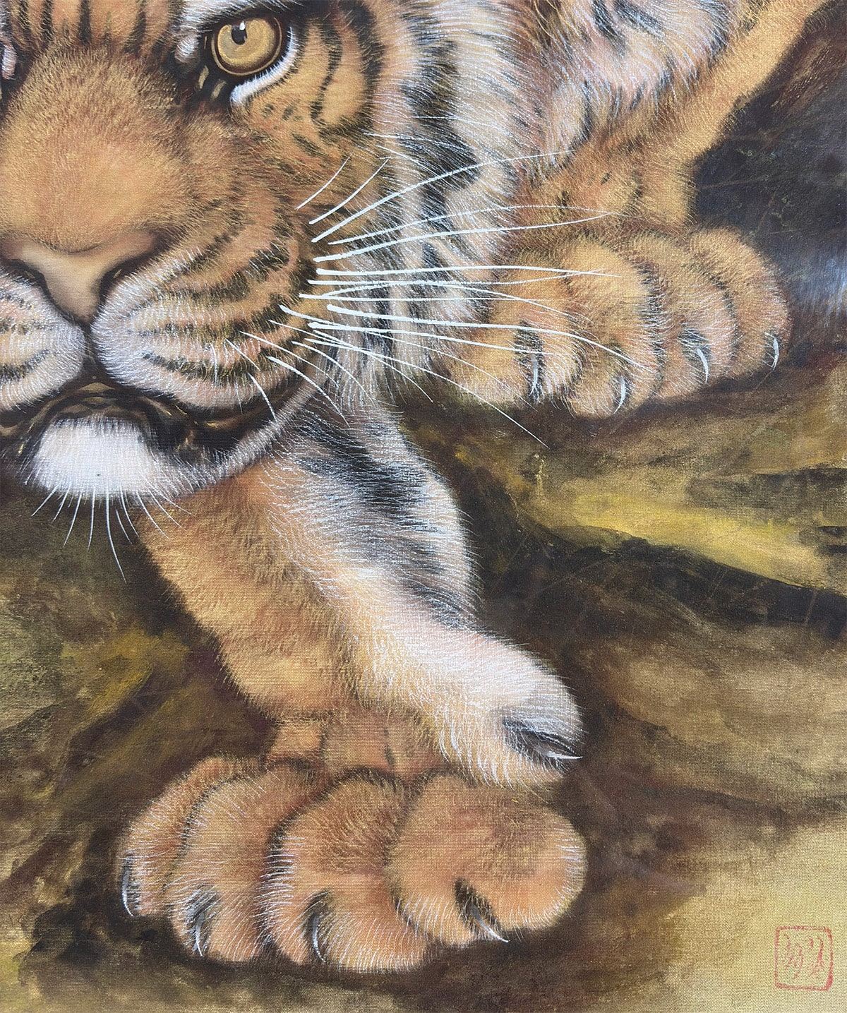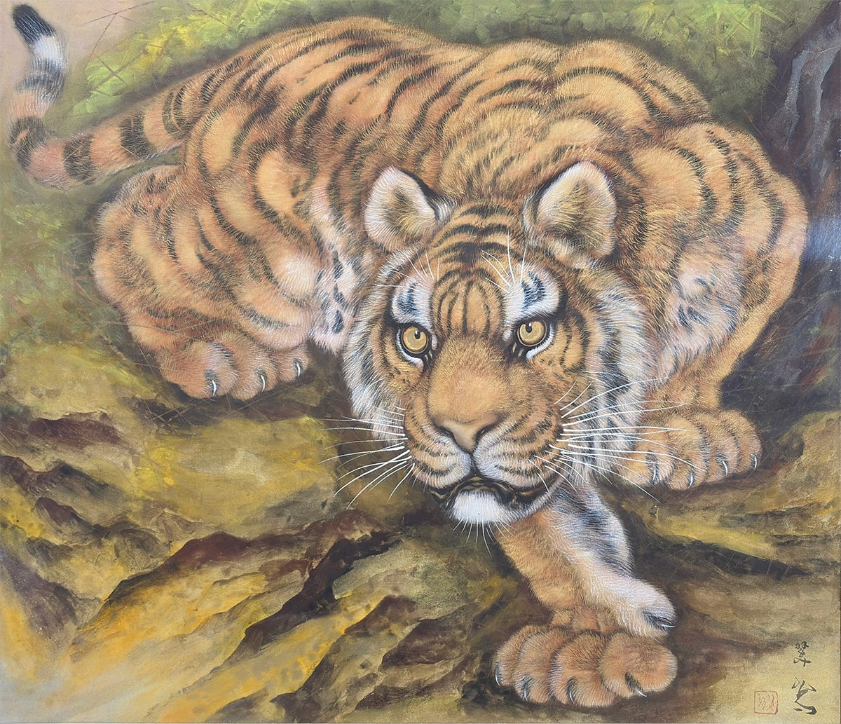 大正5年埼玉県に生まれる。大橋翠石、三尾呉石に師事する。主題は虎を中心とした獣類・動物で、各種展覧会で受賞、三越などで個展を数十回開催。師系の影響を思わせる写生に基づいた堅実な骨格づくりと、毛並みを一本一本描き分ける細密描写を得意とする。