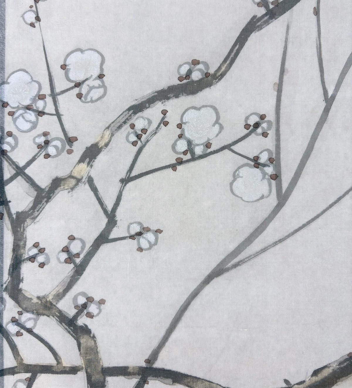●梅は古来より「忍耐と希望」の象徴とされ、寒さの中でいち早く花を咲かせるその姿は、春を待ち望む心を映します。一方、鴛鴦は「夫婦和合」「良縁」の象徴として親しまれ、二羽が寄り添う姿は、穏やかで温かな人間関係を願う気持ちを表します。