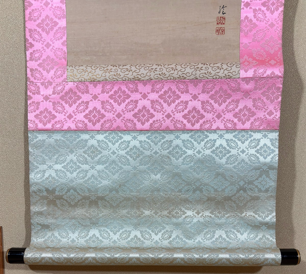 本紙・表装共にヤケ、表装下部に巻き癖がありますが、鑑賞には気にならない程度です。