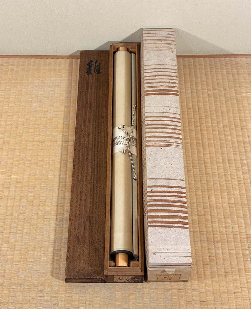 ●品格ある竹文様の表装が作品の静謐な雰囲気を引き立てます。