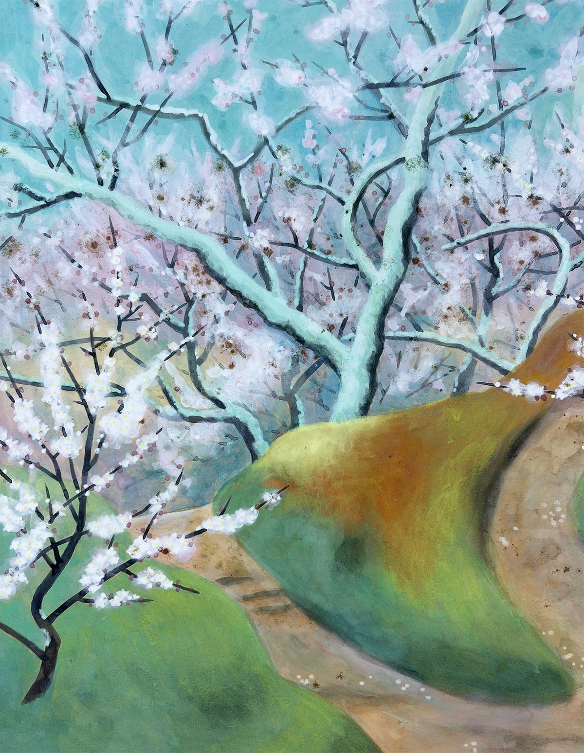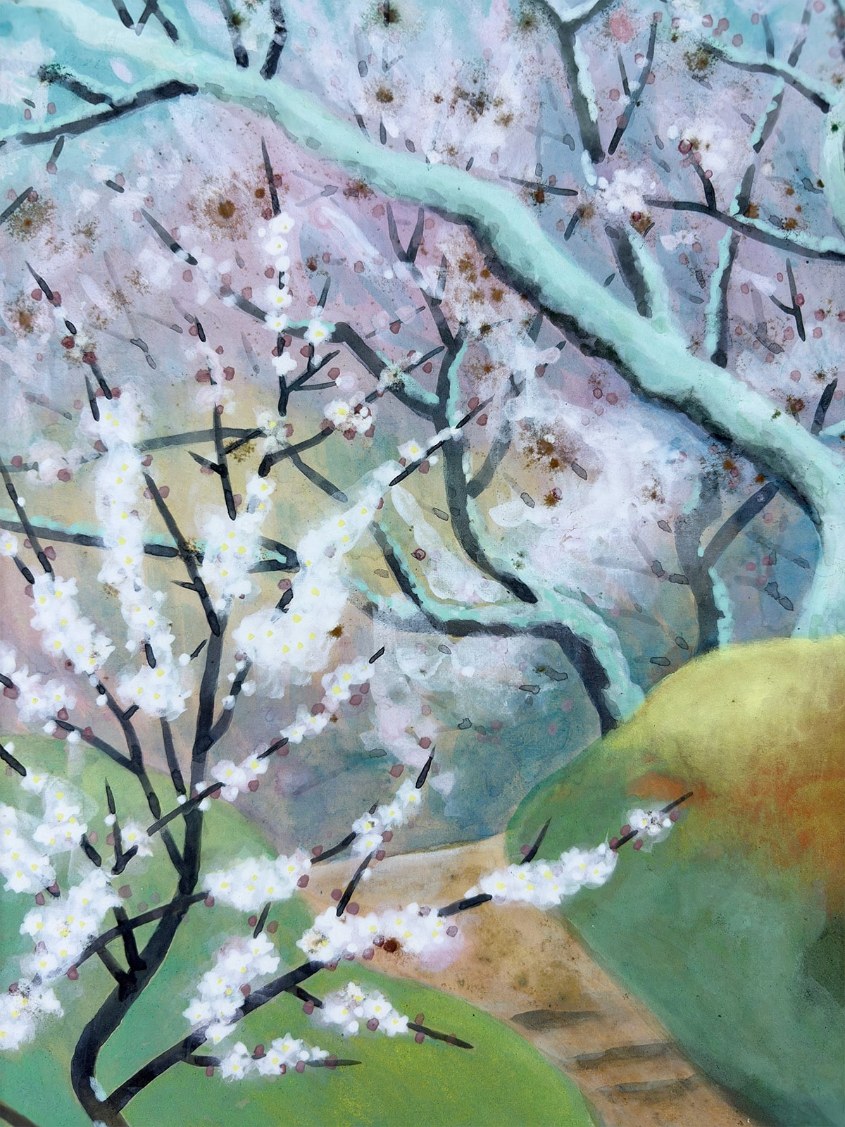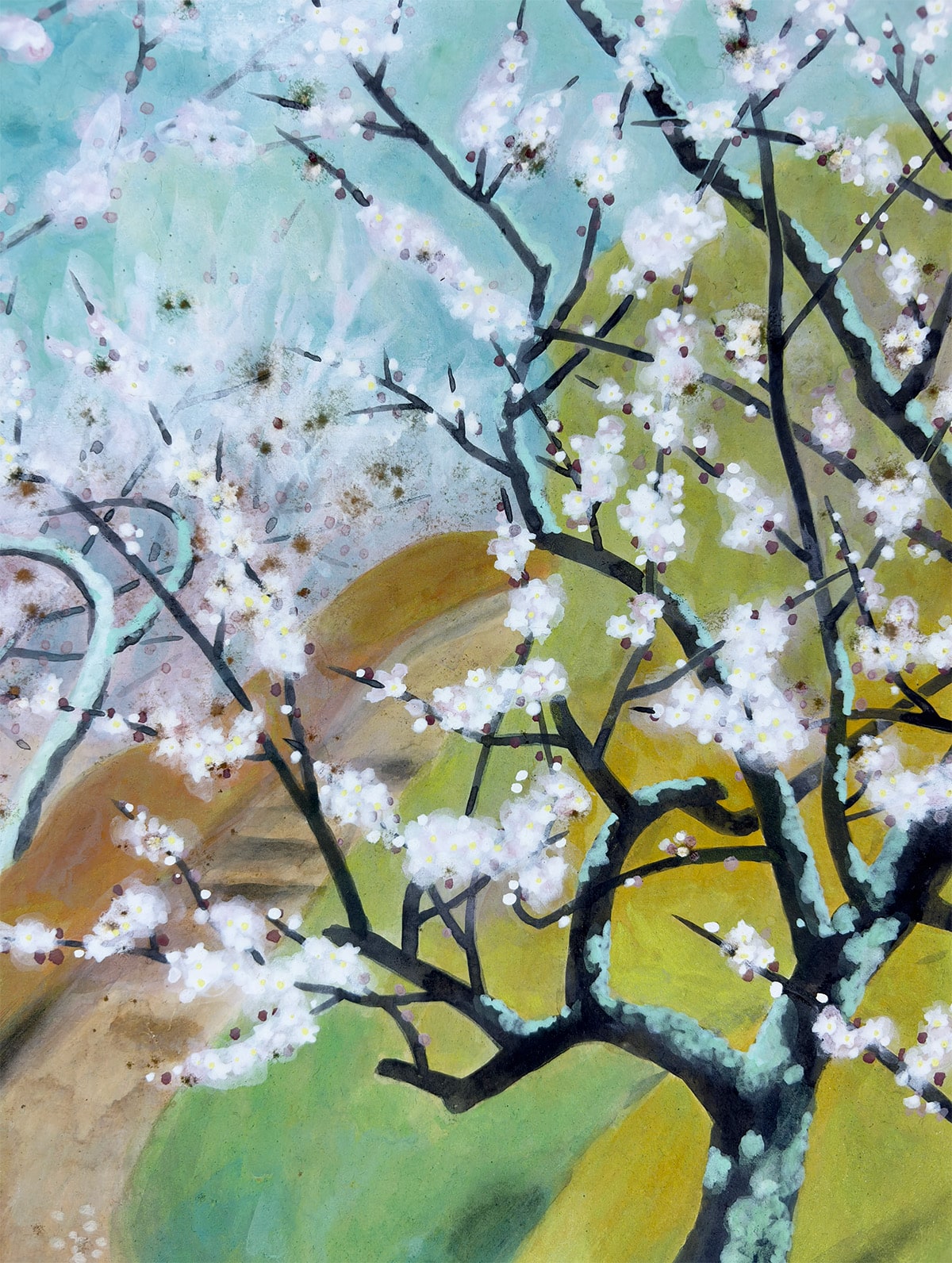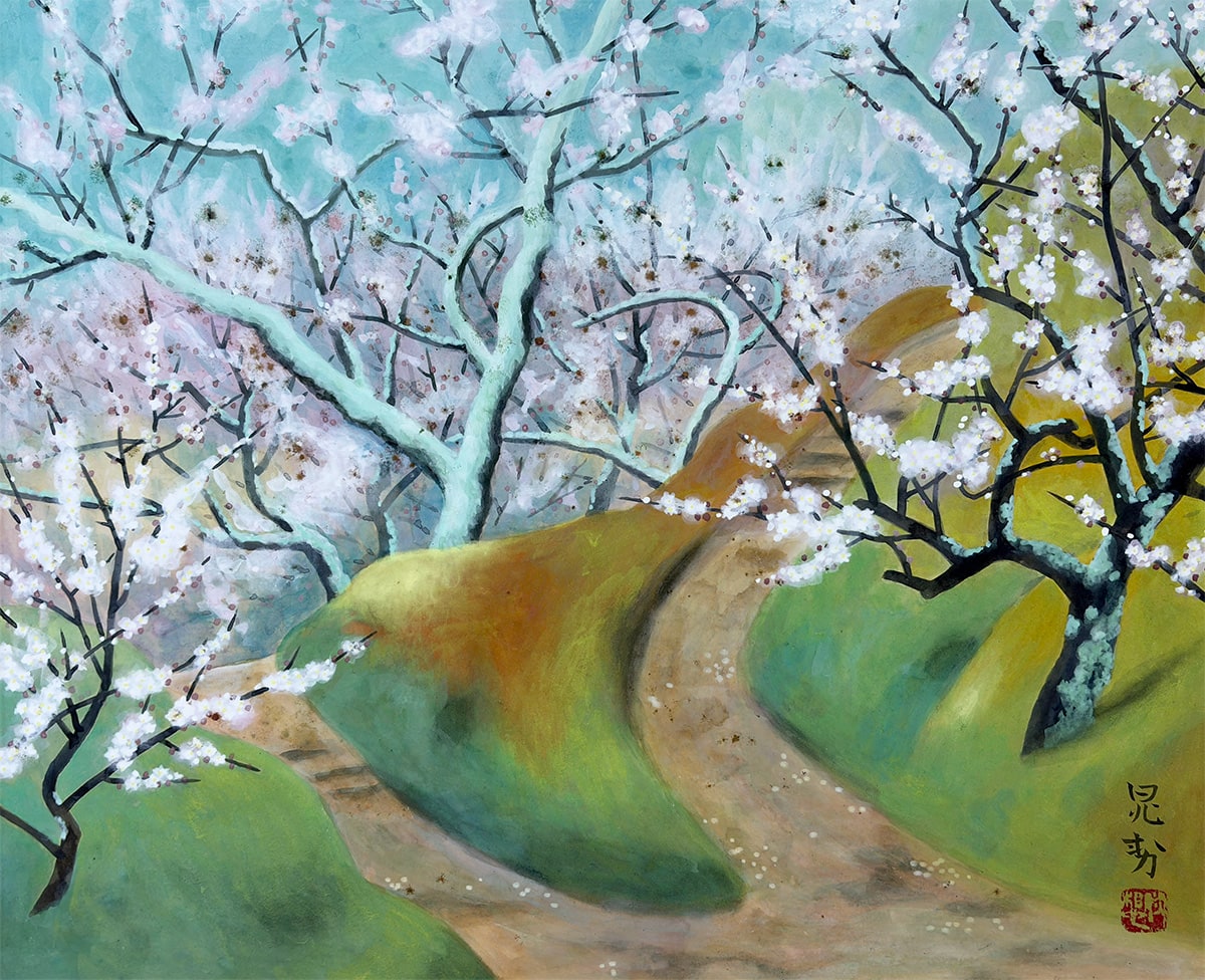 ●奈良・月ヶ瀬は、古くから“隠れ里の梅郷”として知られ、早春の訪れを告げる名所として多くの文人墨客に愛されてきました。本作は、その月ヶ瀬の梅を晁勢先生が清雅な筆致で描き上げた一幅です。