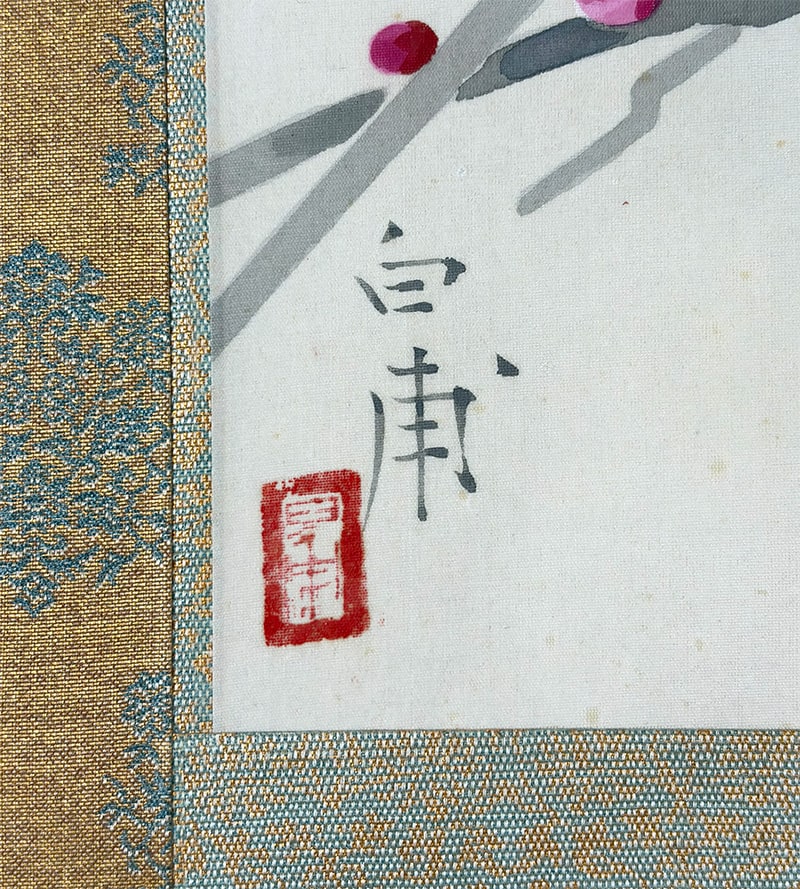 掛軸をしまう時は必ず太巻き芯棒を挟んで巻いてください。