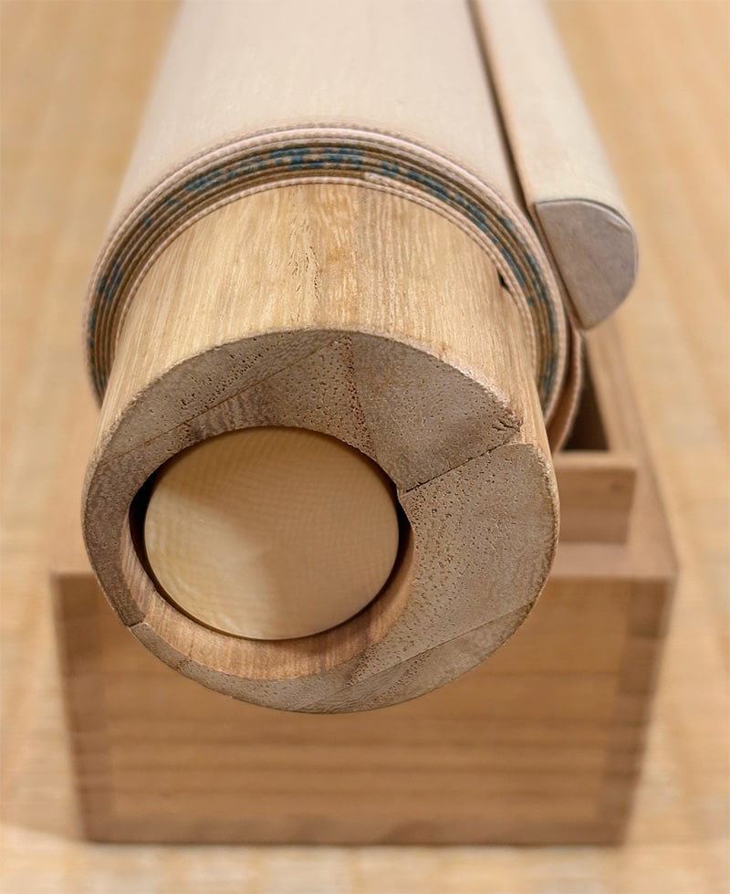 太巻き芯棒は岩絵具の剥離や折れ等を防ぎ、作品の状態をできるだけ良好に保つための保存箱です。