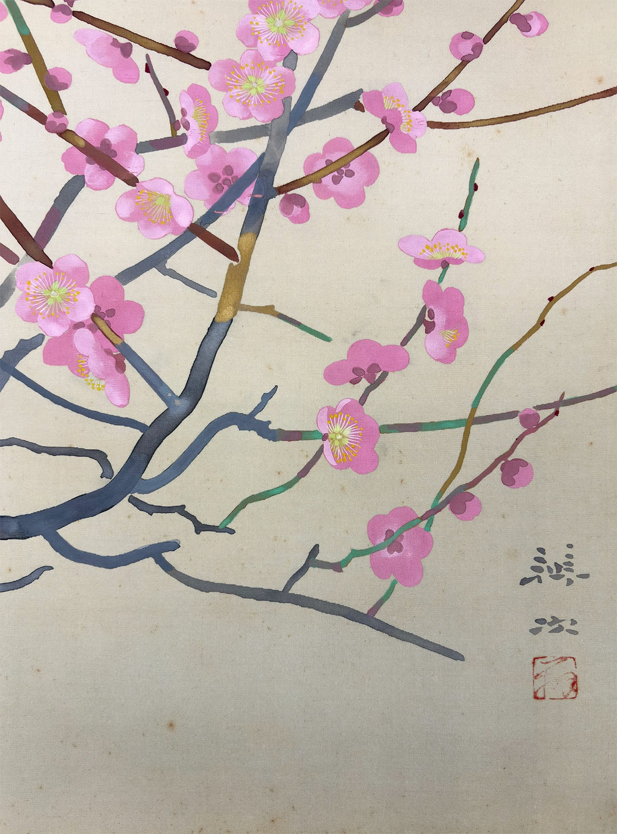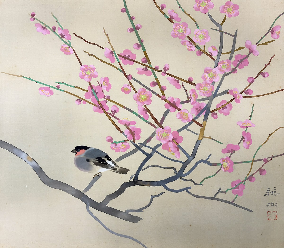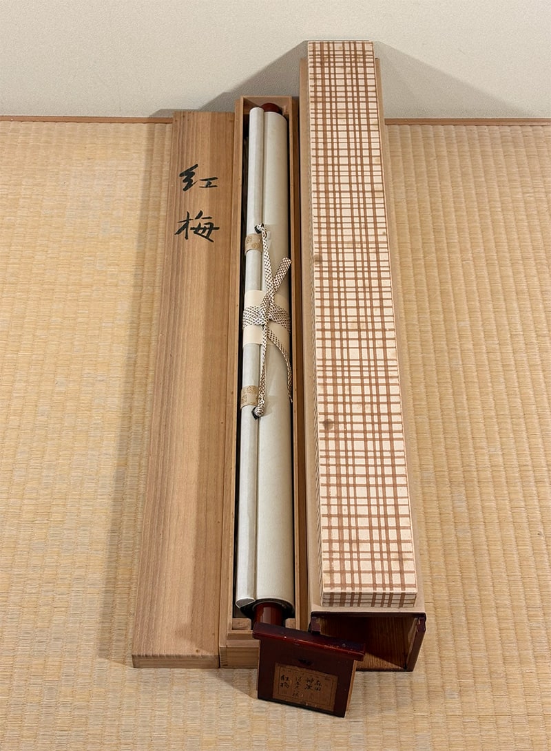 ●早春のよろこびを告げる紅梅を、辨次先生が気品ある筆致で描き上げた一幅です。