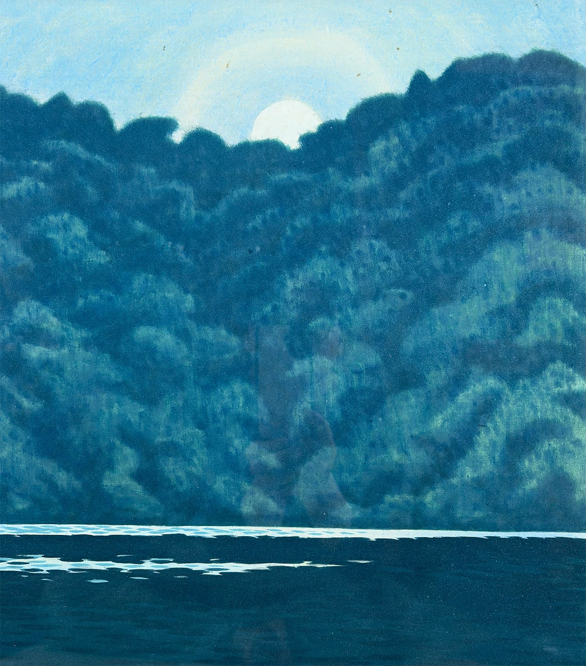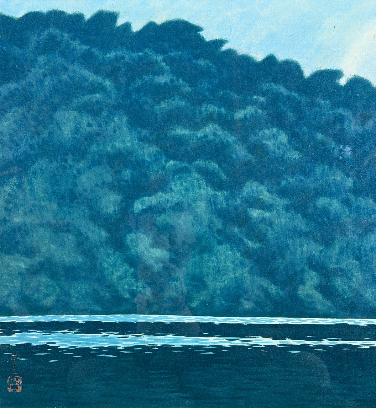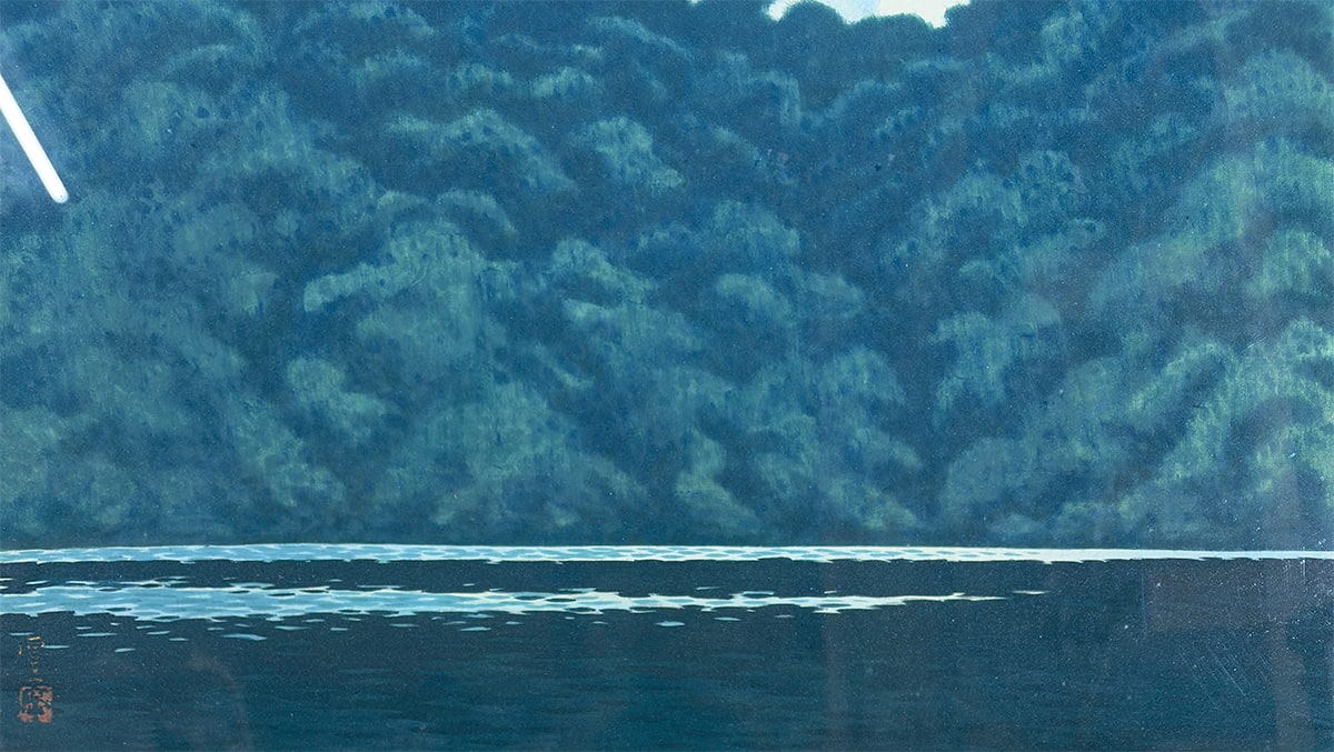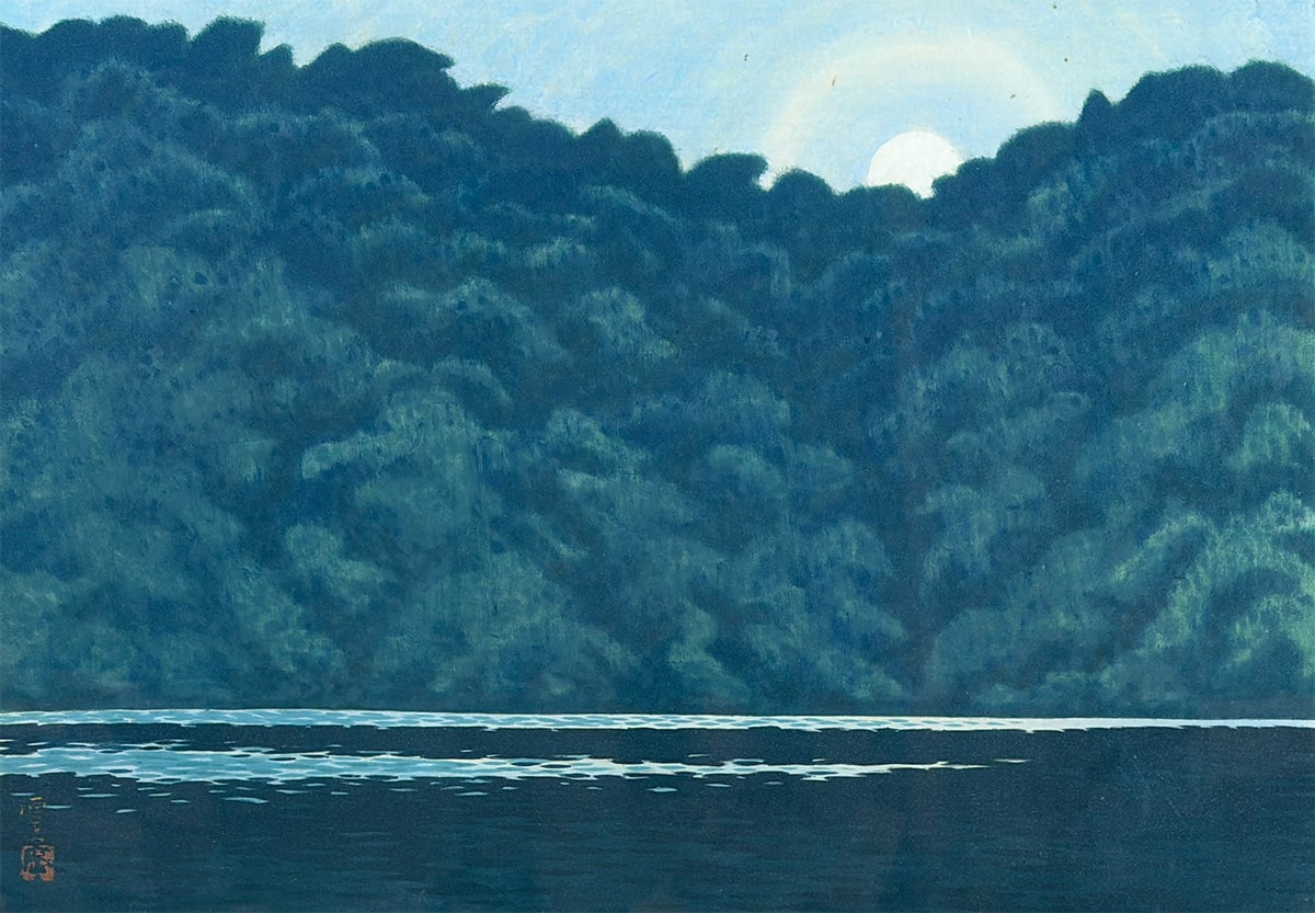 ●月の光が湖面に揺れる美しい一瞬を、奥村厚一先生が繊細に描いた一枚。