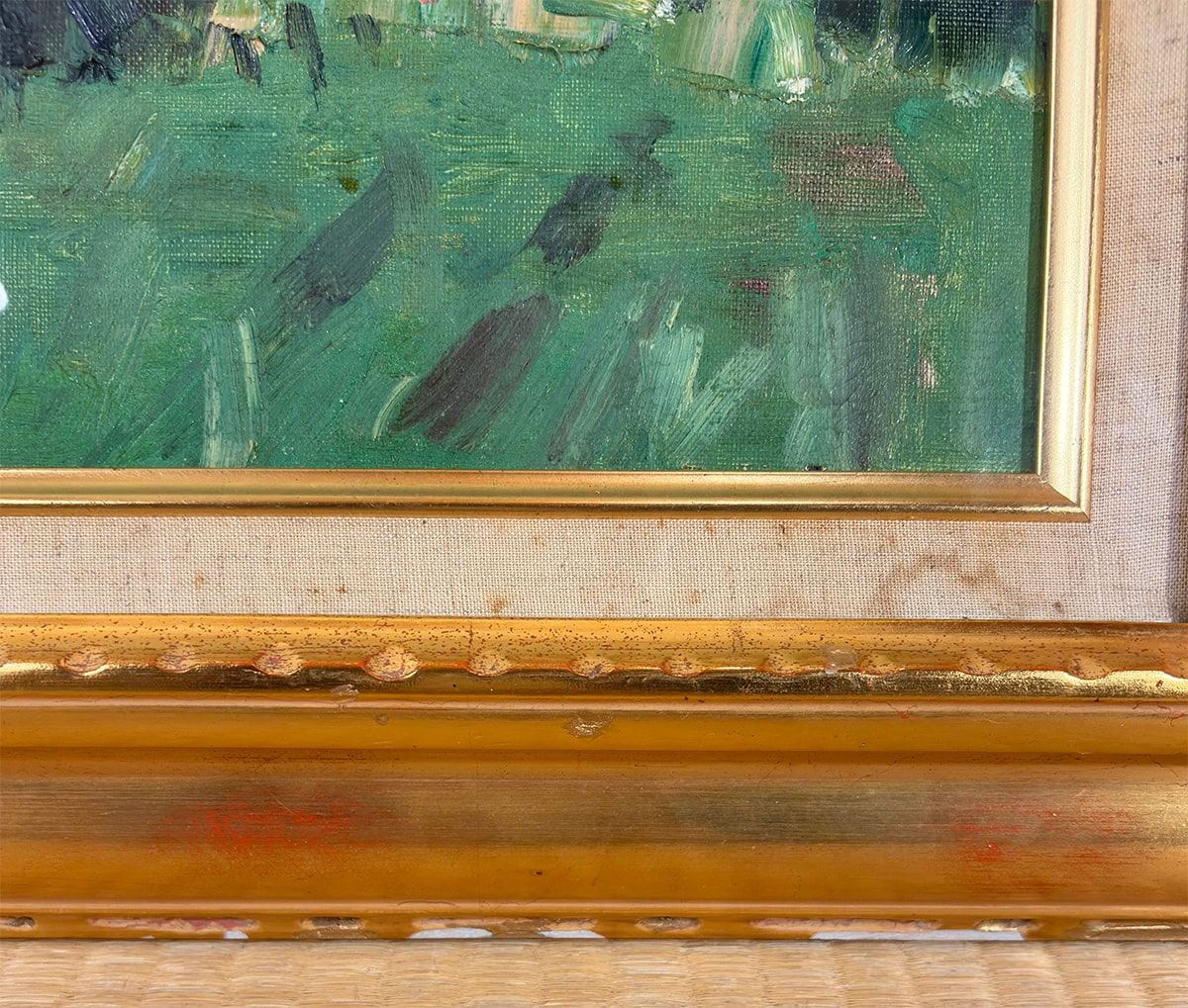 額縁に擦れ、布張りマットに少々シミがありますが、鑑賞には気にならない程度です。