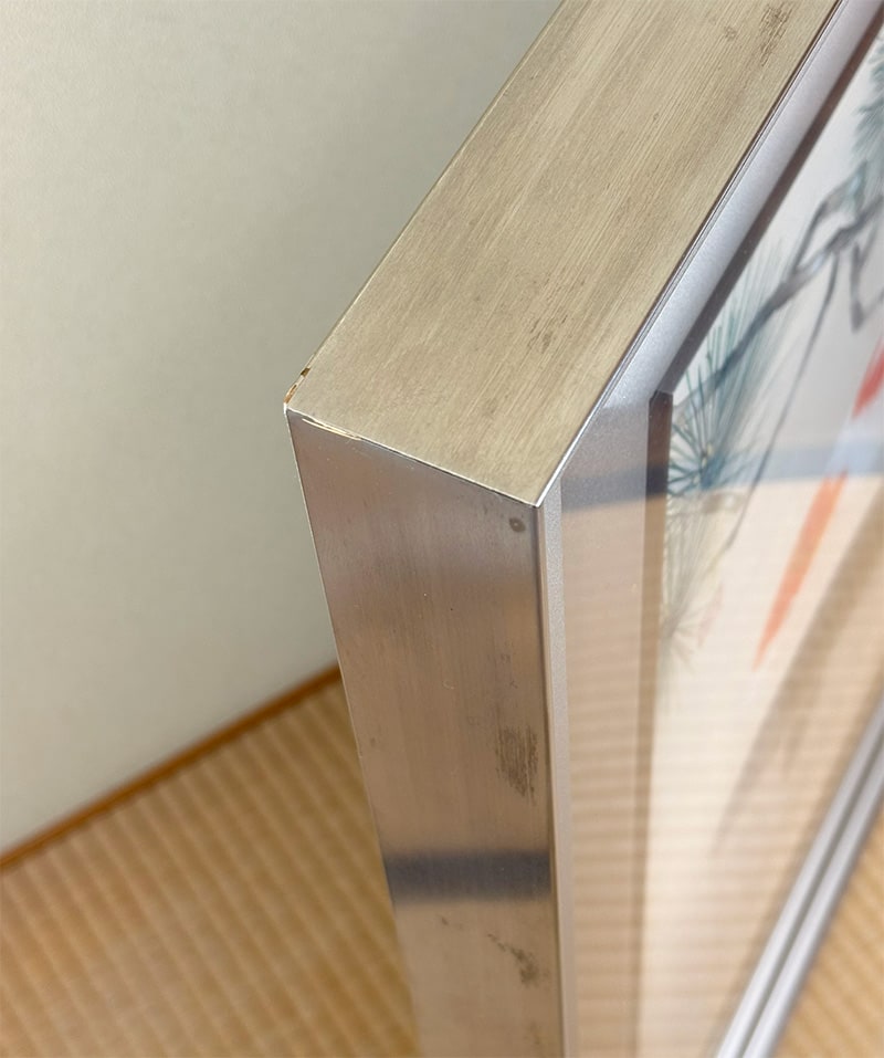 額装は落ち着いた銀系のフレームで、作品の清涼感と格調を引き立てる仕様。