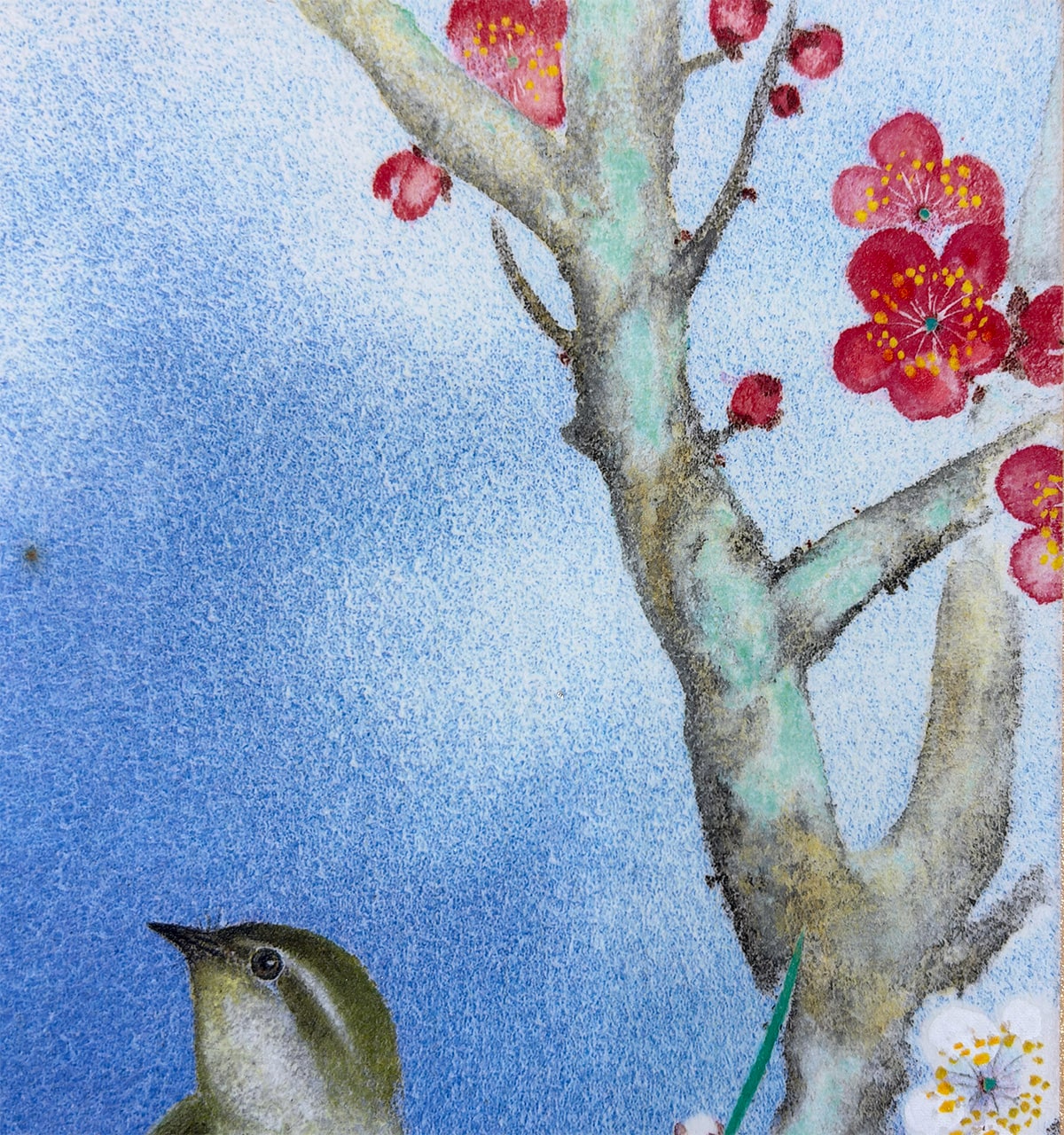 ●画題: 紅白梅に鴬(ウグイス)如月(2月)