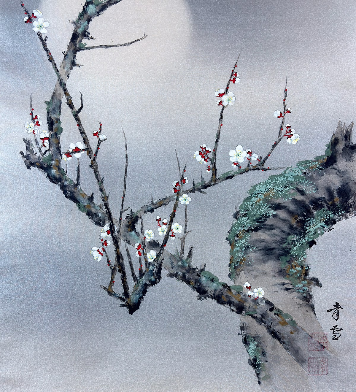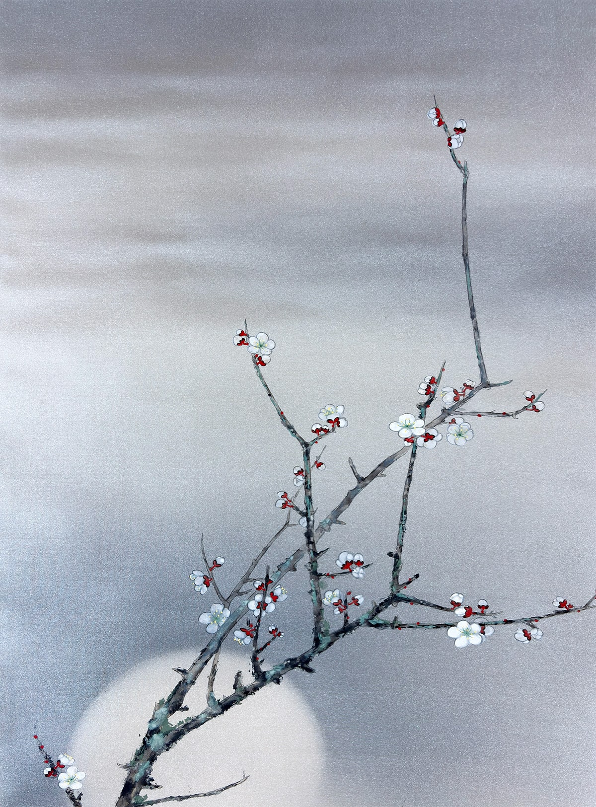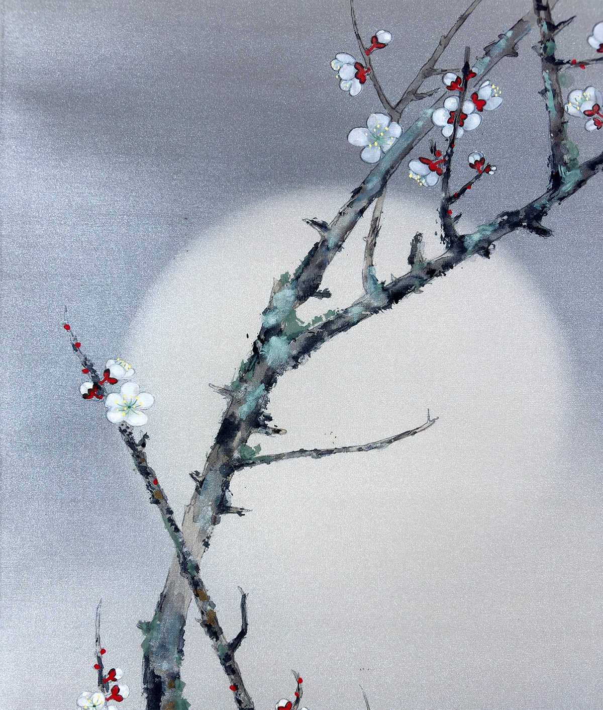 ●【春を告げる梅と静かな月光が調和する一幅 】