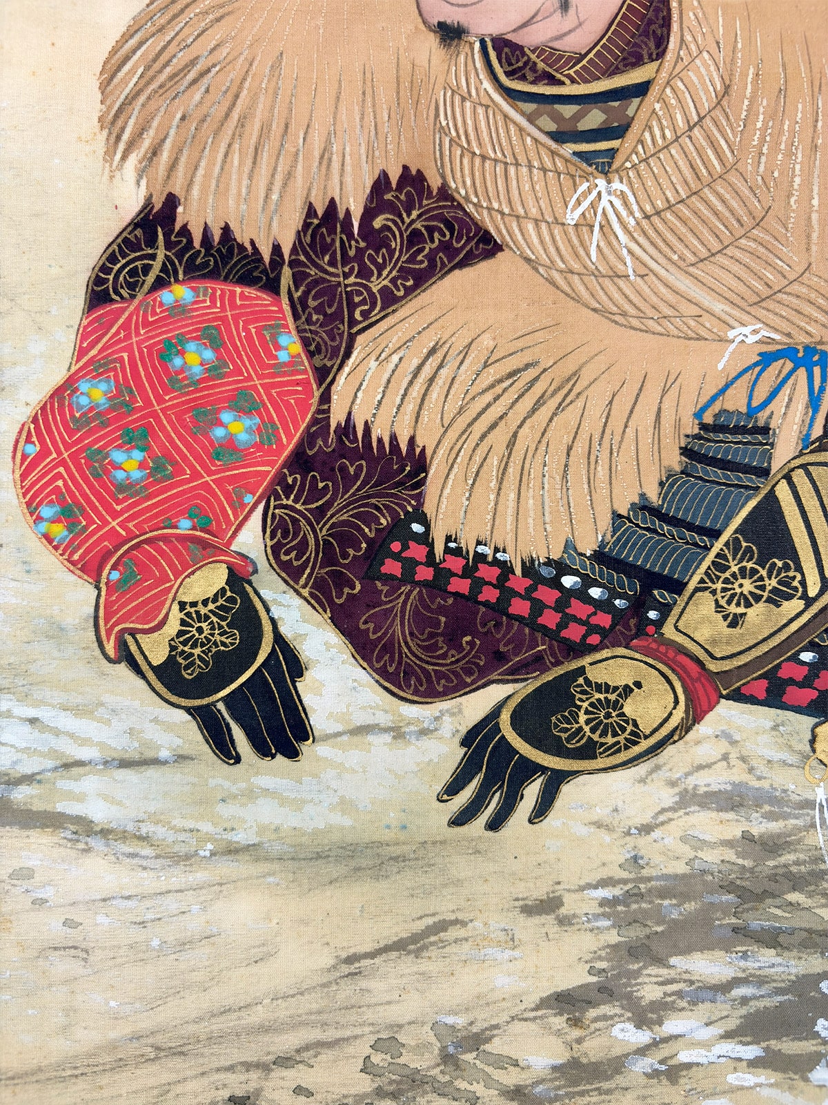 今日では男の子のすこやかな健康と成長を願って端午の節句に鐘馗、武者、兜の掛軸が飾られます。