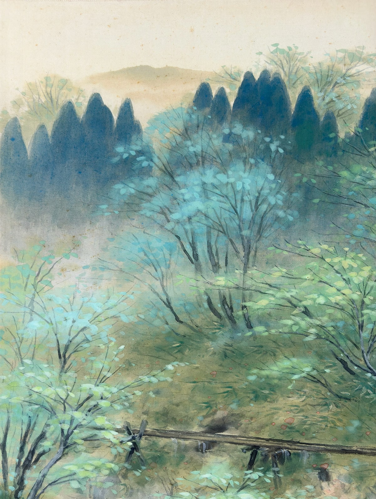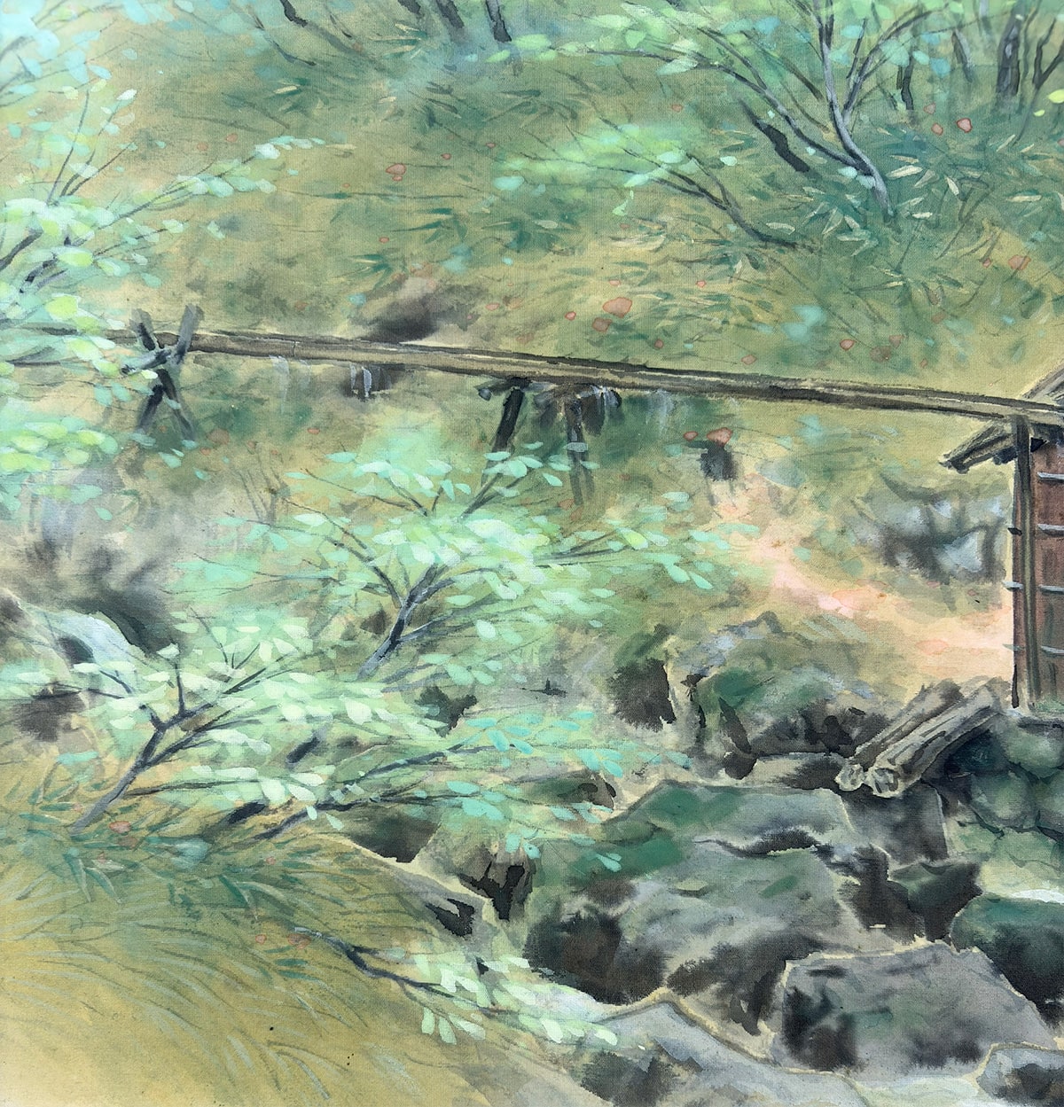 ●木々の葉がつくる柔らかな影、ゆるやかに流れる水の音まで感じられるような、山下巌先生らしい穏やかな筆致が魅力です。