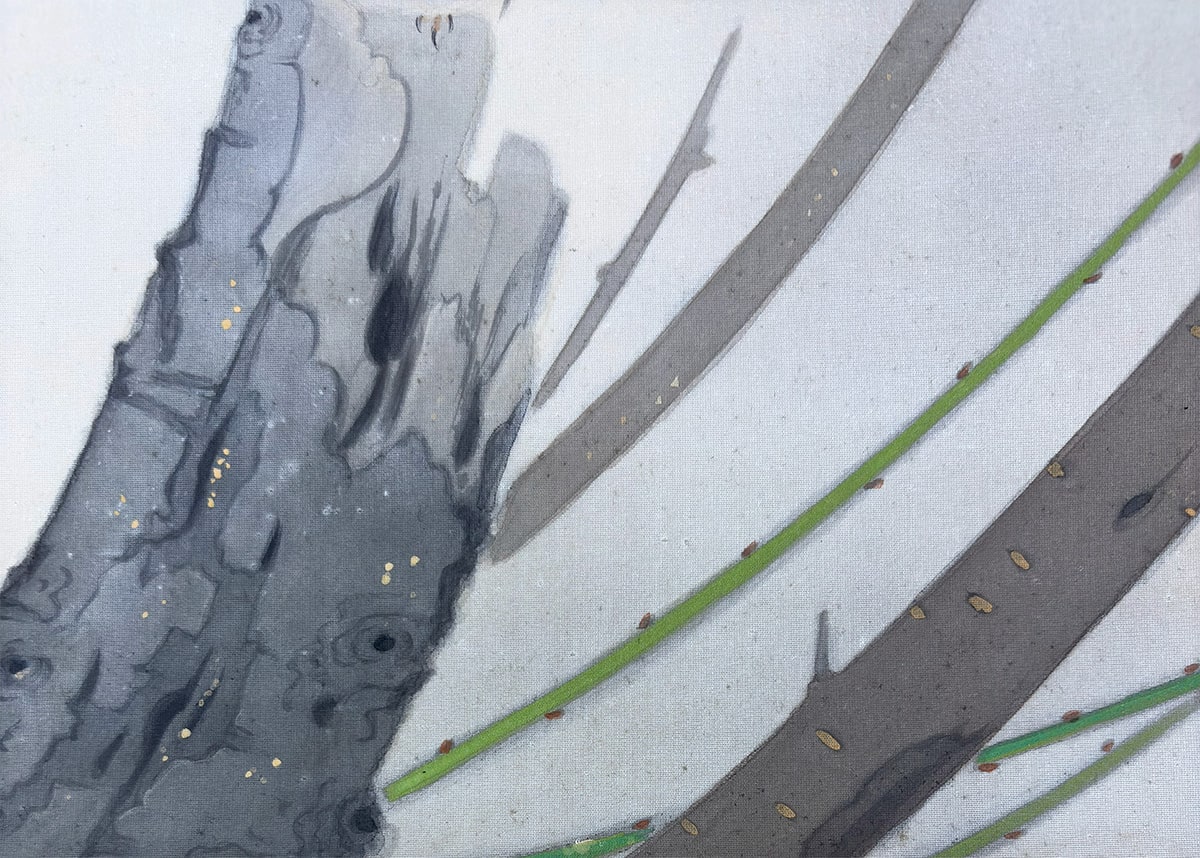 ●背景はあえて描き込みを抑え、ほのかな暈し(ぼかし)によって、春の光が差し込むような静かな余韻をつくり出しています。