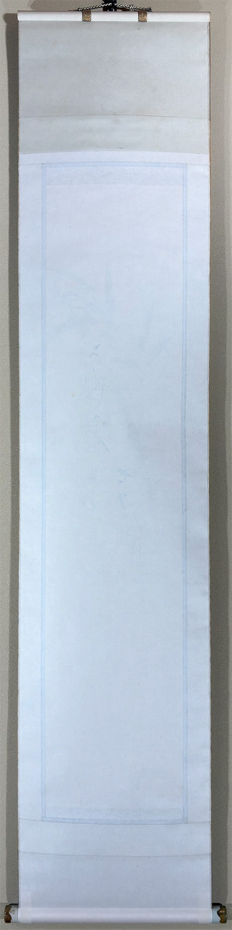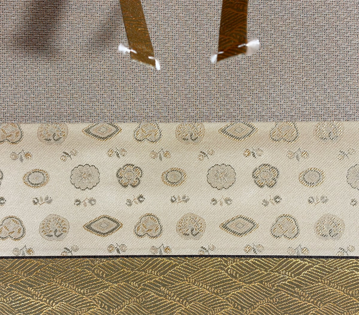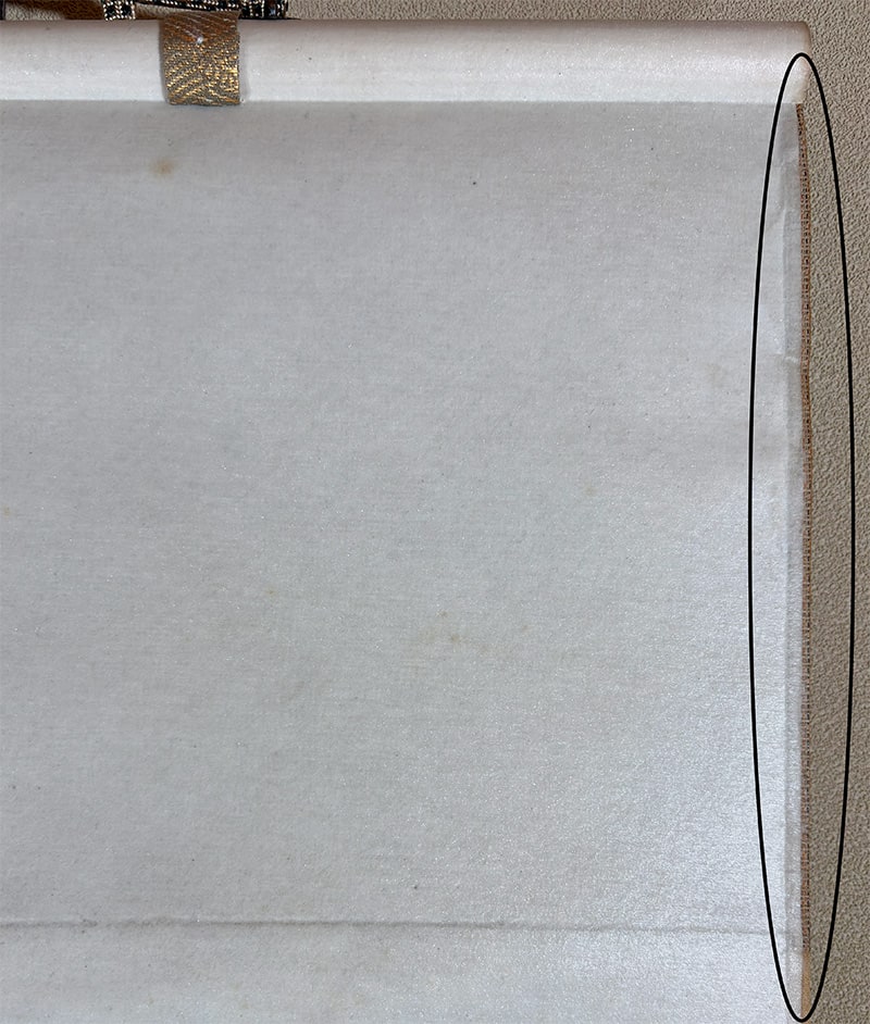 掛軸をしまう時は必ず太巻き芯棒を挟んで巻いてください。