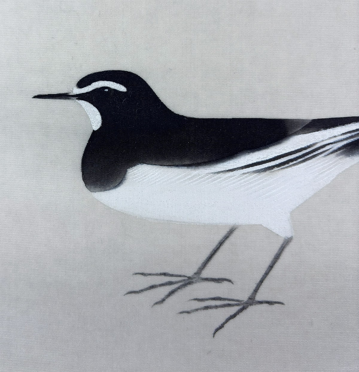 下のほうには鶺鴒(セキレイ)が静かに佇み、自然の中の穏やかなひとときを感じさせます。