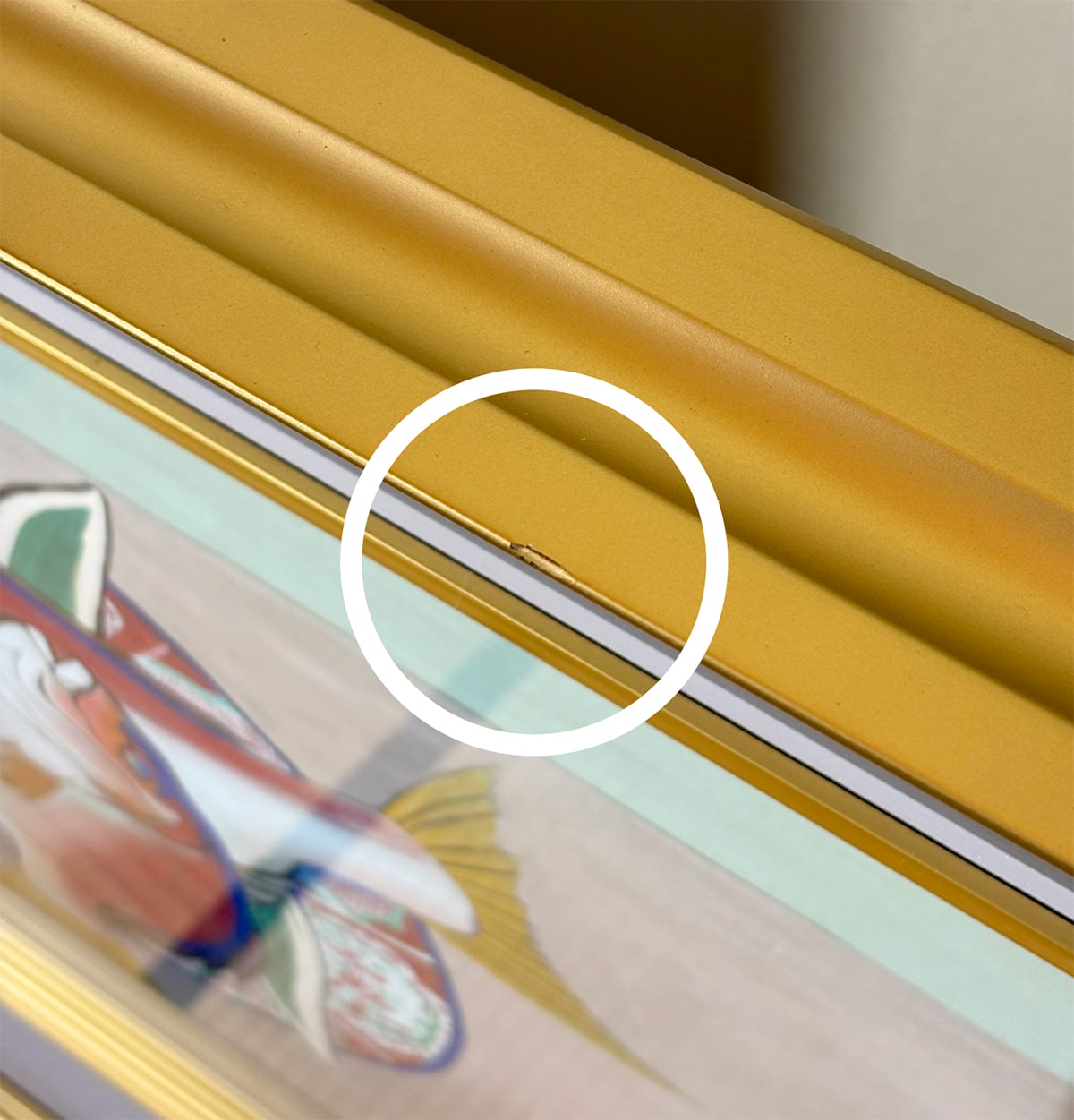 額装の上部に小さいアタリがありますが、鑑賞時はほとんど気になりません。