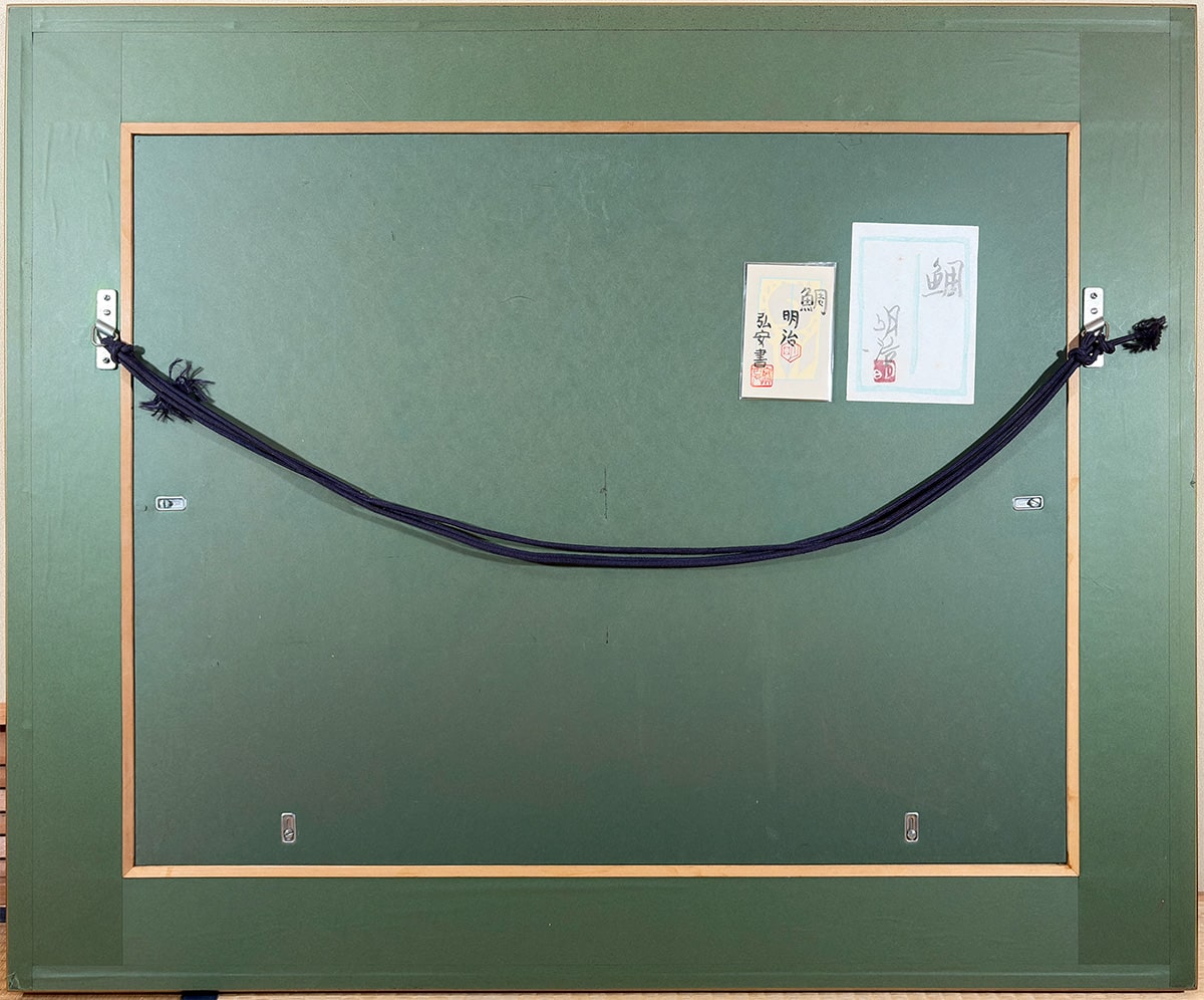 ●日本画の巨匠・橋本明治先生が描いた本作は、古来より「めでたい」の象徴として親しまれてきた鯛を主題とした吉祥画です。